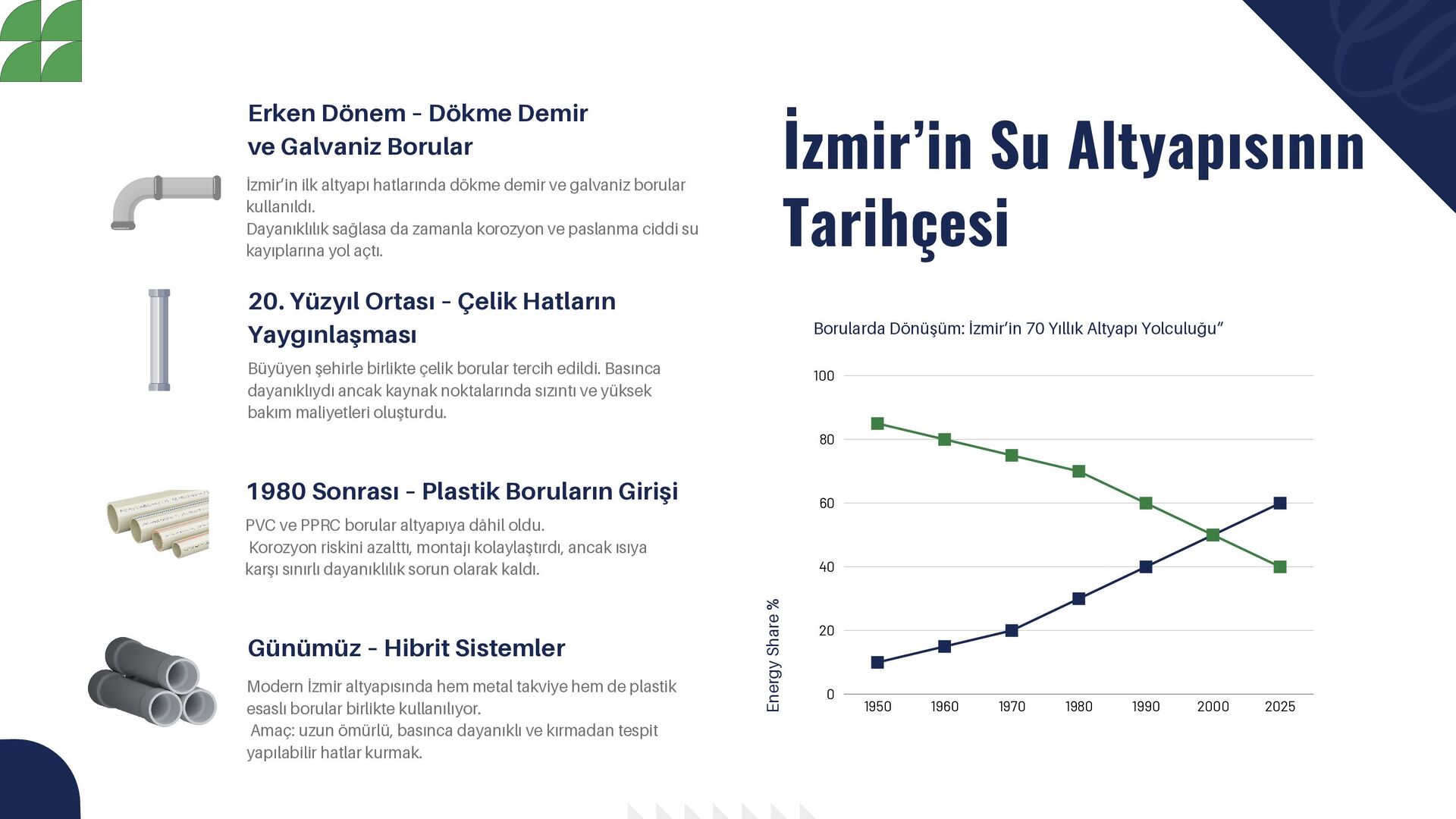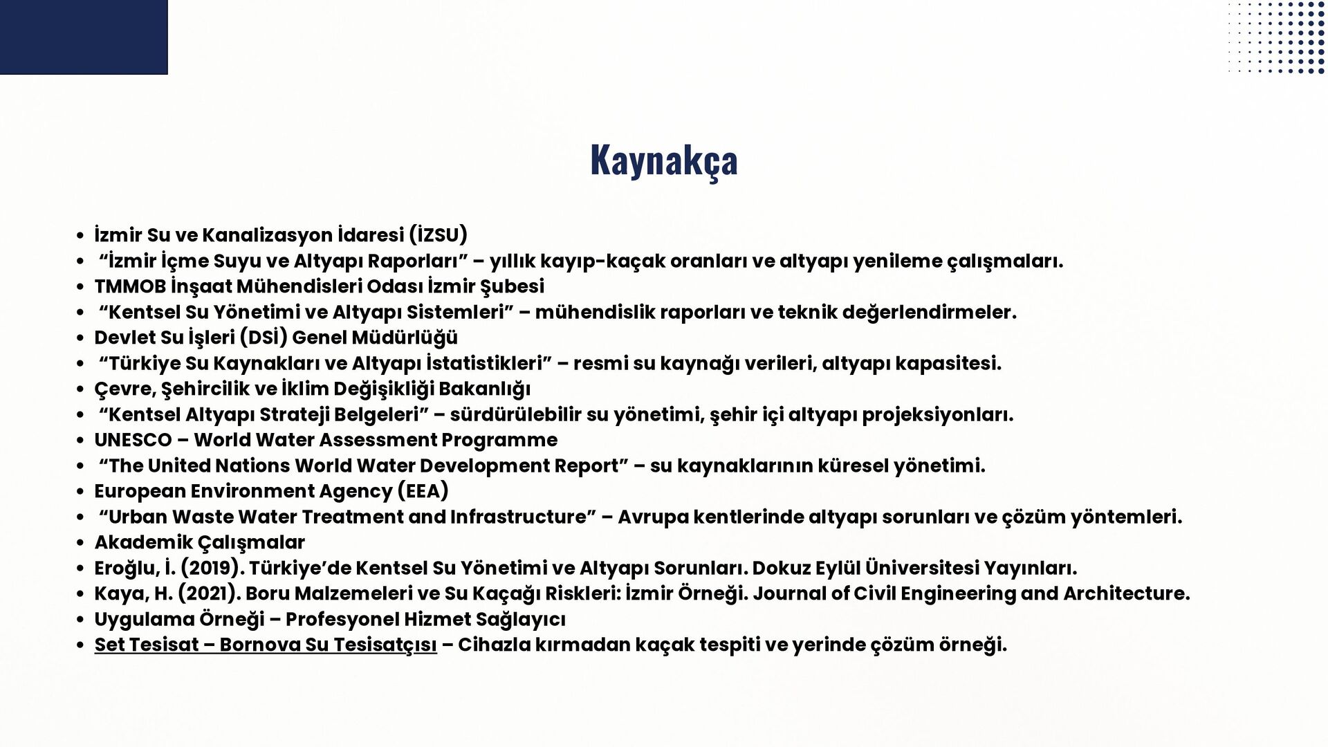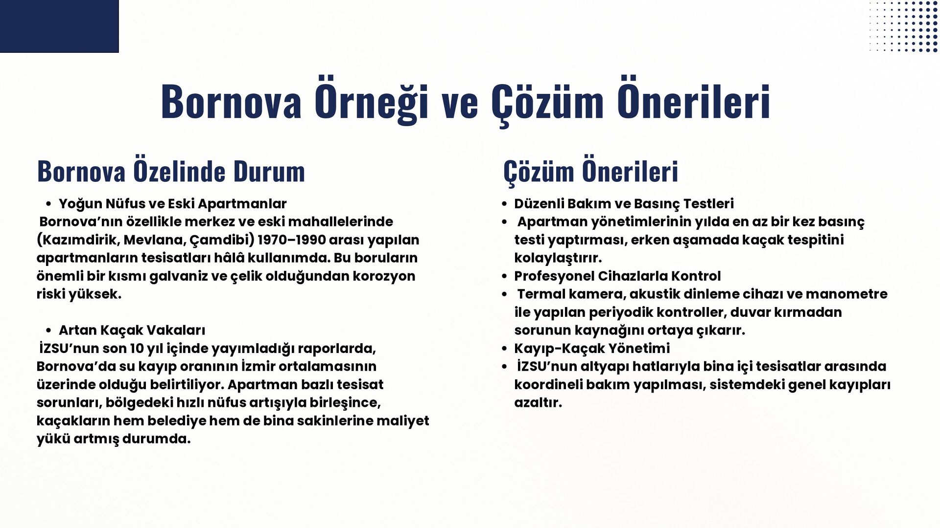 İzmir’in su altyapısına dair hazırlanan bu inceleme, belediye raporları, mühendislik odalarının yayınları ve uluslararası kurumların araştırmaları temel alınarak oluşturulmuştur. Özellikle Bornova’daki tesisat sorunlarının anlaşılması ve çözüm yollarının geliştirilmesi için yerel uygulama örnekleri de değerlendirilmiştir.