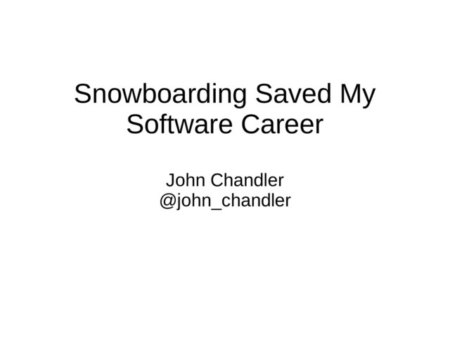 Snowboarding Saved My Software Career John Chandler @john_chandler