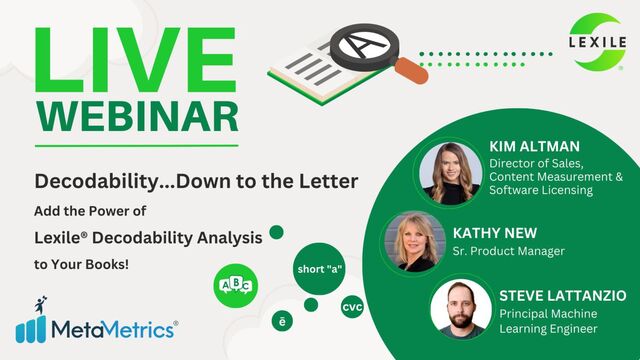 Join Kim Altman, Director of Sales, Kathy New, Senior Product Manager, and Steve Lattanzio, Principal Machine Learning Engineer, for a closer look at our science of reading-aligned, first-of-its-kind analysis of decodable books. Learn: