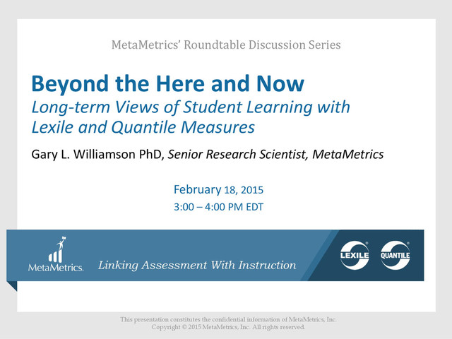 See how the North Carolina Department of Public Instruction used Lexile measures for measuring growth in 3rd- 8th grade reading over a 14 year period and hear how this research sheds new light on policy actions that were implemented during the time frame.