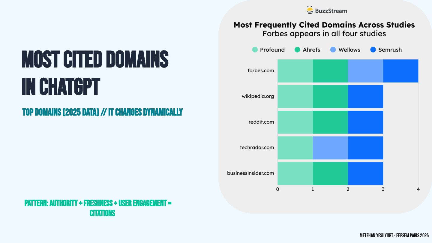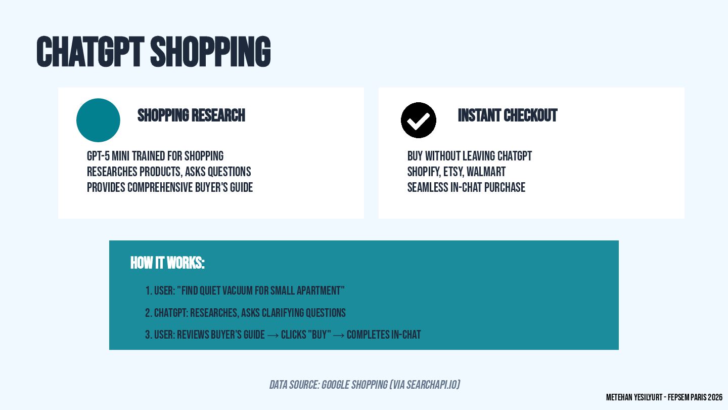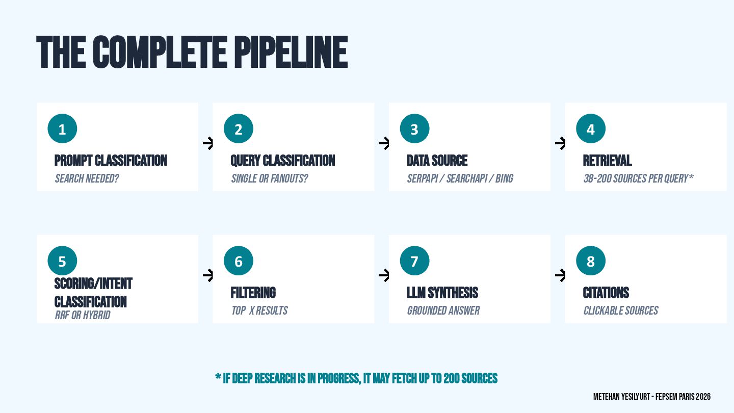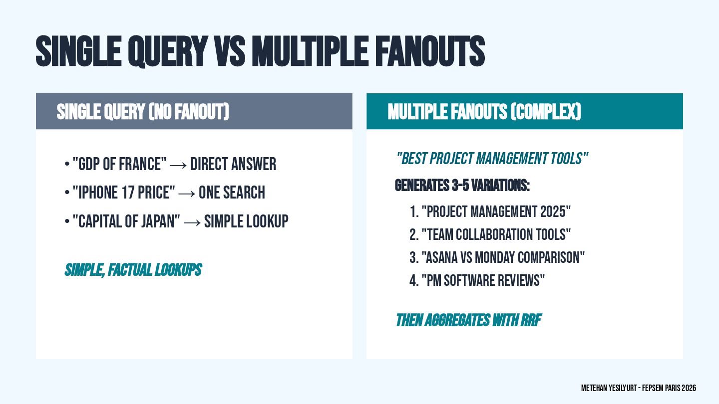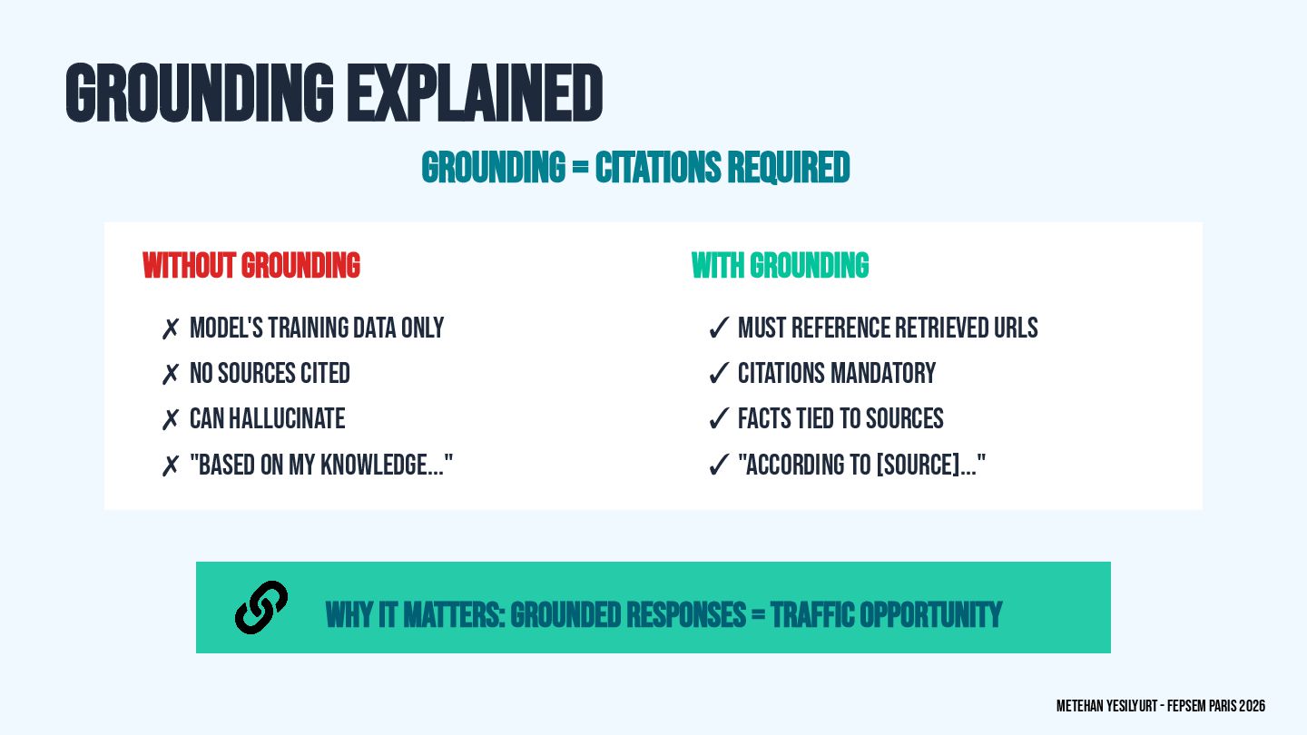 LLMS HAVE RECENCY BIAS, UPDATE YOUR POSTS/PAGES OLDER THAN 6 months chatgpt ıs usıng longer fanouts, run base prompts multıple tımes CHECK FOR LLM CONSISTENCY SIMILAR/SAME PROMPTS ON GOOGLE AI MODE, PERPLEXITY, MISTRAL SAVE FANOUTS, RUN ANALYSIS, IDENTIFY TOPIC GAPS Metehan Yesilyurt - FePSeM Paris 2026 CHECK REDDIT CITATIONS, LOOK FOR USERS QUESTIONS, IDENTIFY GAPS NICHE DOWN AS POSSIBLE, CREATE PROMPTS FOR DIFFERENT BUYER PERSONAS, THEY LIKELY PROMPTING; “I’m thinking of, fınd me, search for me x,y,z”
