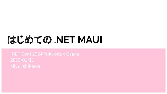 はじめての .NET MAUI .NET Conf 2024 Fukuoka x Osaka 2025/01/11