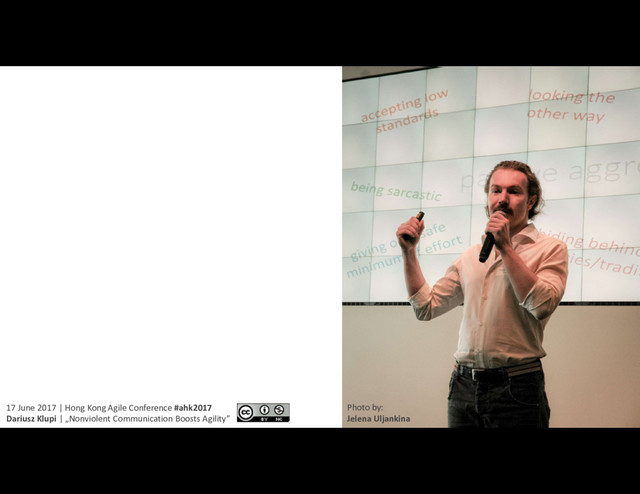 Achiever, Self-Conscious SELF-AUTHORING MIND Diplomat, Conformist SOCIALISED MIND Opportunist, Self Protective EGOISTIC MIND Instinctive, Impulsive CHILDISH MIND Strategist, Integrative SELF-TRANSFORMING MIND CAPACITY TO CARE FOR PEOPLE AND SYSTEMS & COMPLEXITY YOU EMBRACE Waterfall Agile NVC Inspired by work of: www.integrallife.com 17 June 2017 | Hong Kong Agile Conference #ahk2017 Dariusz Klupi | „Nonviolent Communication Boosts Agility”