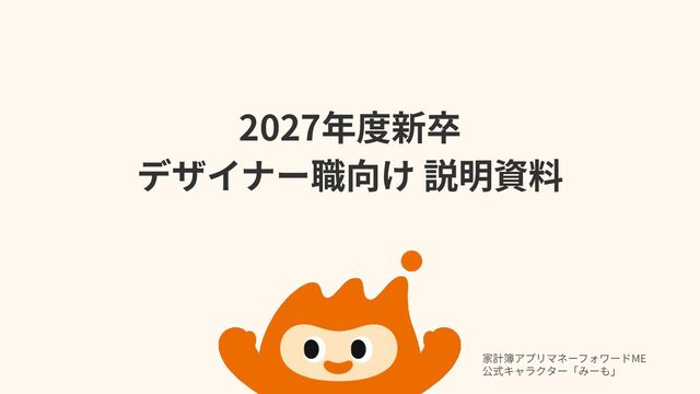 2027年度新卒 デザイナー職向け 説明資料 家計簿アプリマネーフォワードME 公式キャラクター「みーも」