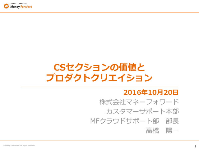 1 © Money Forward Inc. All Rights Reserved CSセクションの価値と プロダクトクリエイション