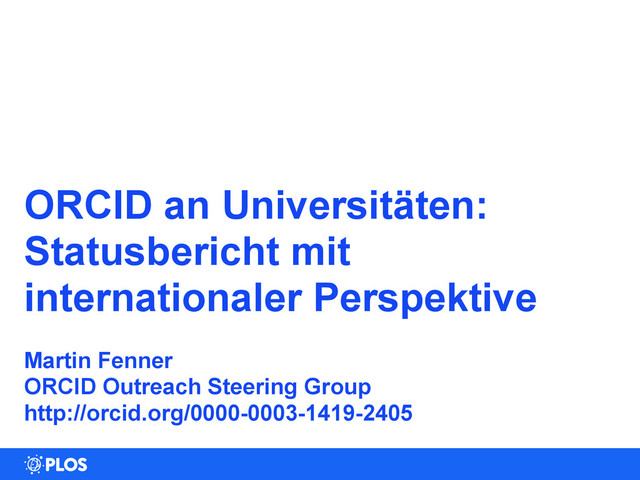 1. ORCID an Universitäten: Statusbericht mit internationaler Perspektive ! Martin Fenner