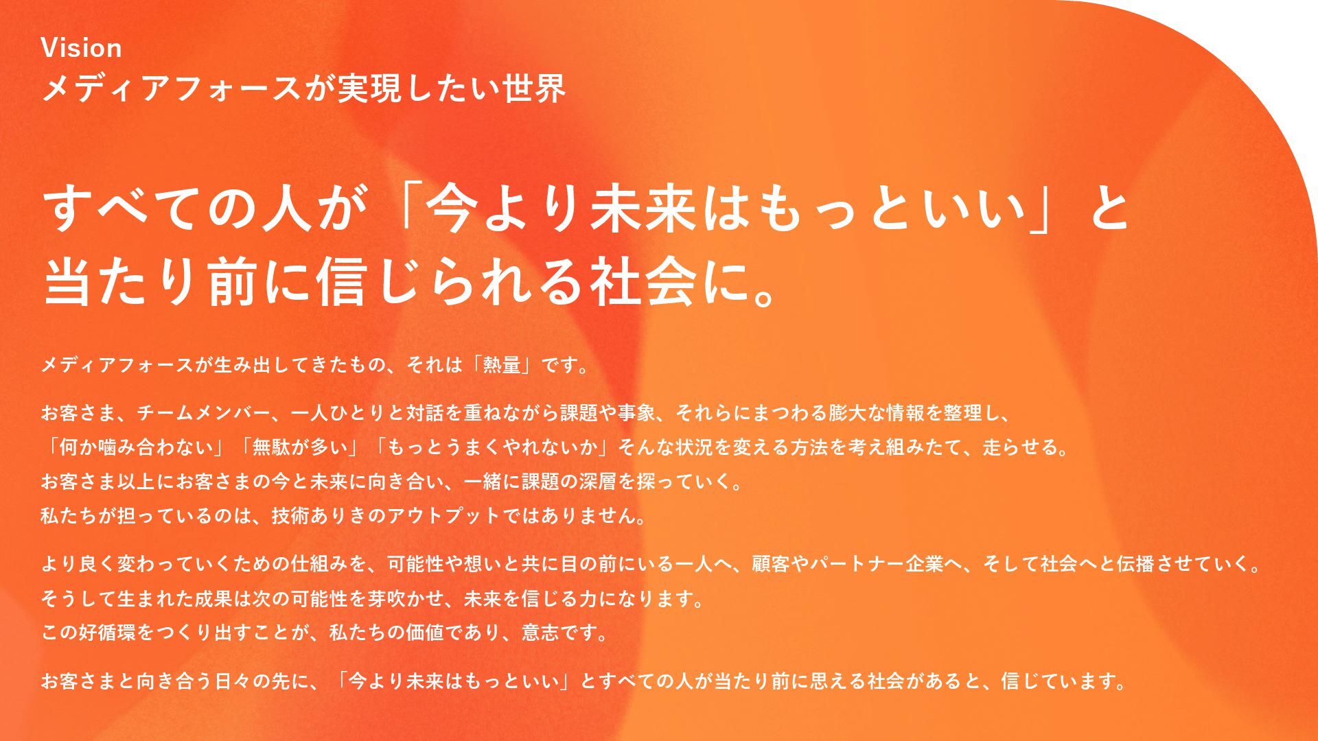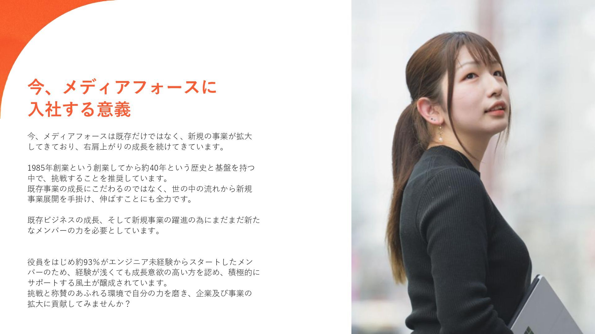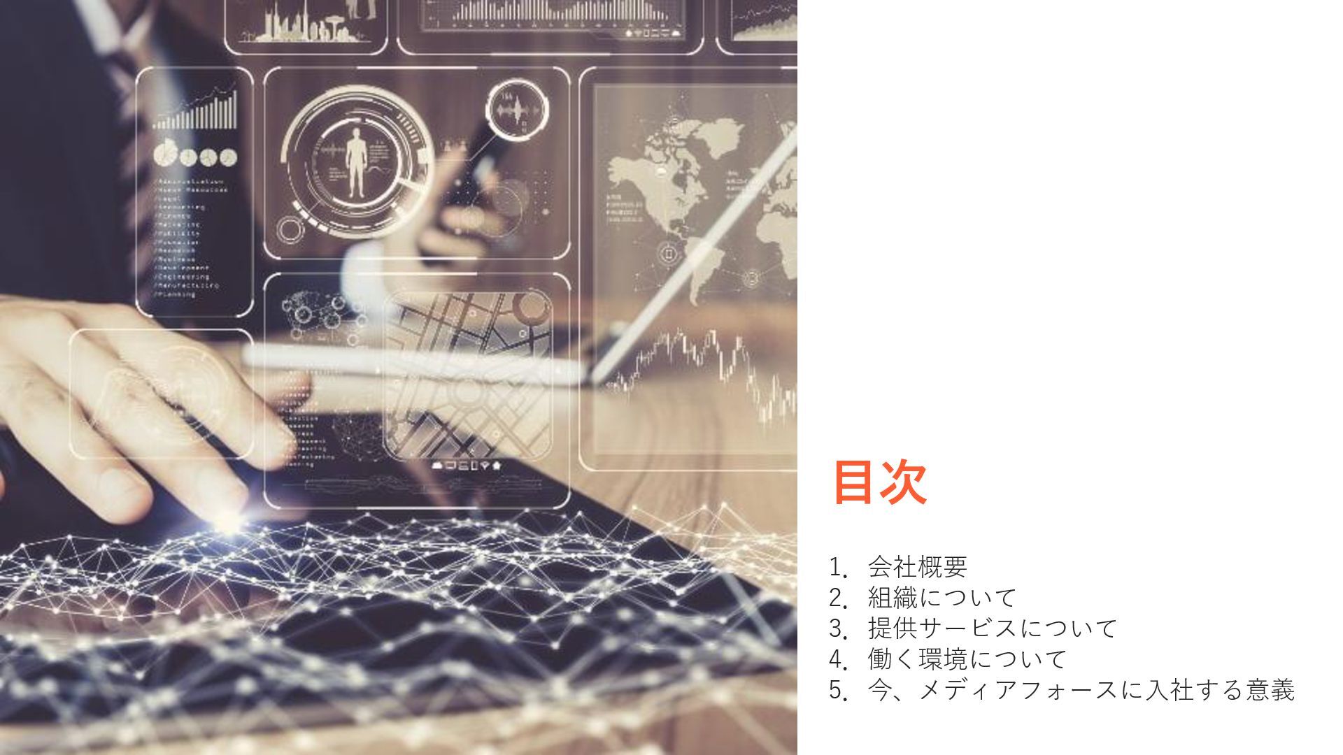 1. 会社概要 会社名 株式会社メディアフォース 創業 1985年5月27日 拠点 東京都中野区本町2-46-1 中野坂上サンブライトツイン 20F・21F 従業員数