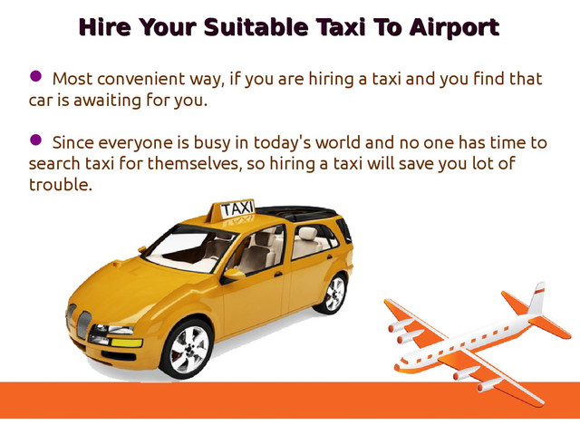 To Airport Most convenient way, if you are hiring a taxi and you find that car is awaiting for you. Since everyone is busy in today's world and no one has time to search taxi for themselves, so hiring a taxi will save you lot of trouble.