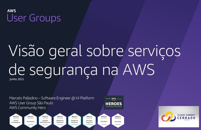 gerenciamento AWS Organizations AWS Single Sign-On * Contas de negócio MFA IAM (users) IAM (roles) S3 (Dados) AWS STS AWS Secrets Manager * Contas de negócio = desenvolvimento/homologação/produção/etc AWS Systems Manager Parameter store