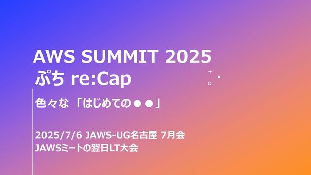 AWS SUMMIT 2025 色々な 「はじめての••」 ぷち re:Cap 2025/7/6 JAWS-UG名古屋 7月会