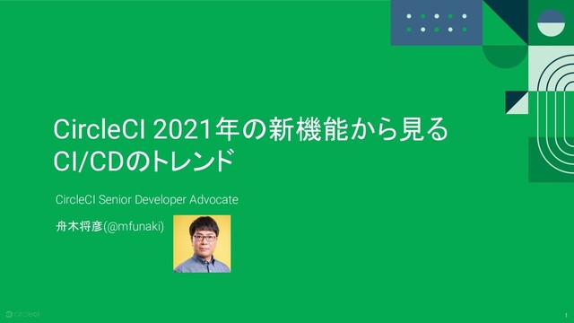 1 CircleCI 2021年の新機能から見る CI/CDのトレンド CircleCI Senior Developer Advocate 舟木将彦(@mfunaki)