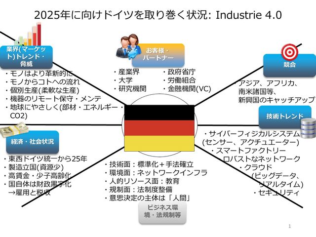 This is an example of Context Map to grasp surroundings (contexts) of a target. This example is expected to be useful to understand why Germany pursue Industrie 4.0.