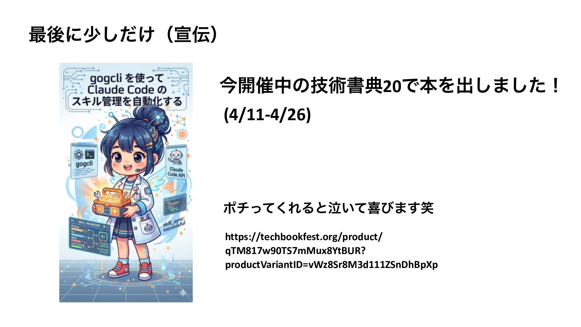 ࠷ޙʹগ͚ͩ͠ʢએʣ ࠓ։࠵தͷٕज़ॻయ20ͰຊΛग़͠·ͨ͠ʂ (4/11-4/26) https://techbookfest.org/product/ qTM817w90TS7mMux8YtBUR? productVariantID=vWz8Sr8M3d111ZSnDhBpXp ϙνͬͯ͘ΕΔͱٽ͍ͯتͼ·͢স