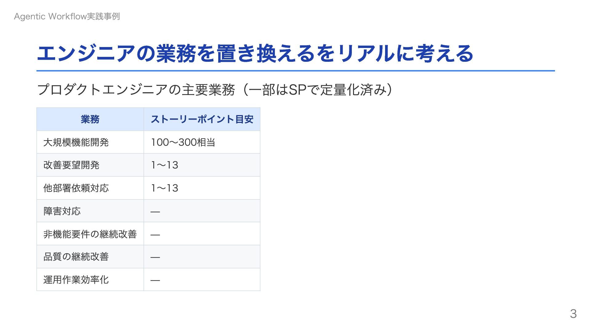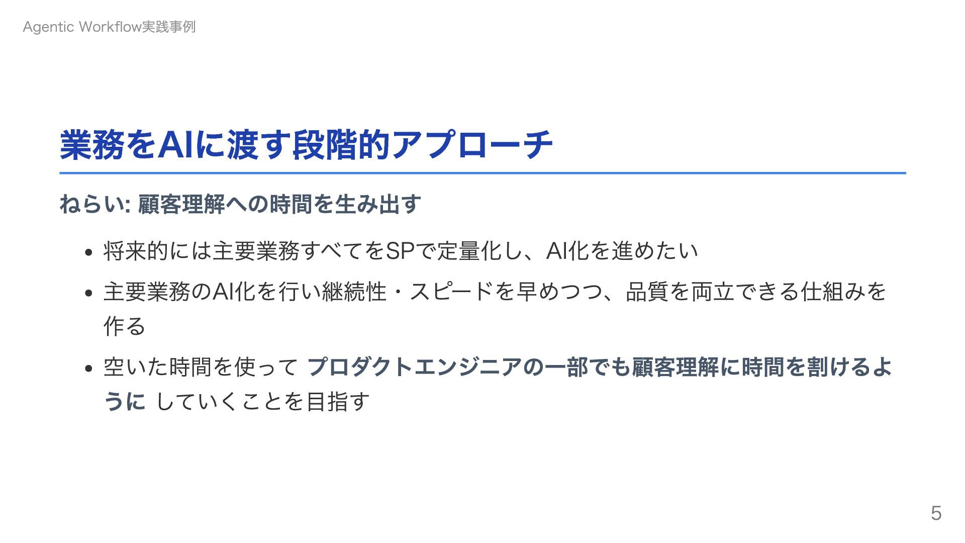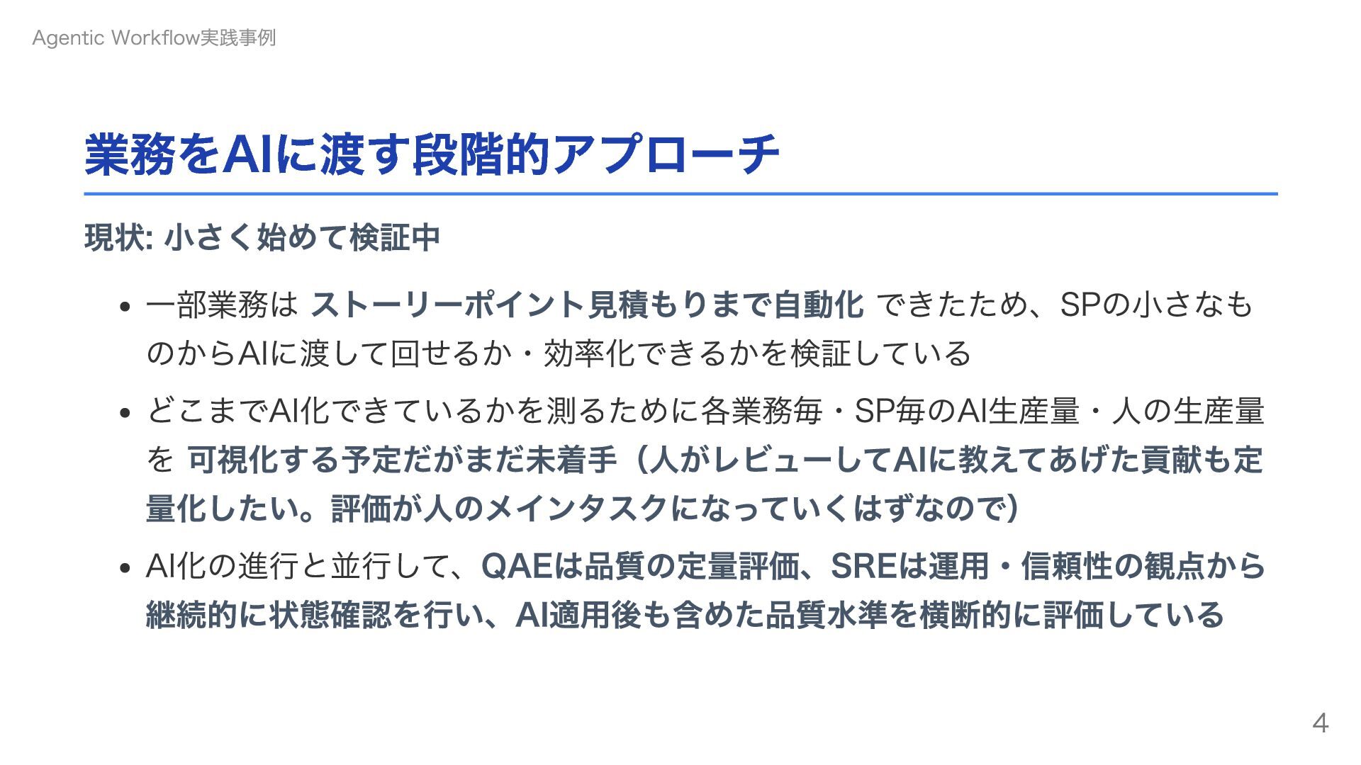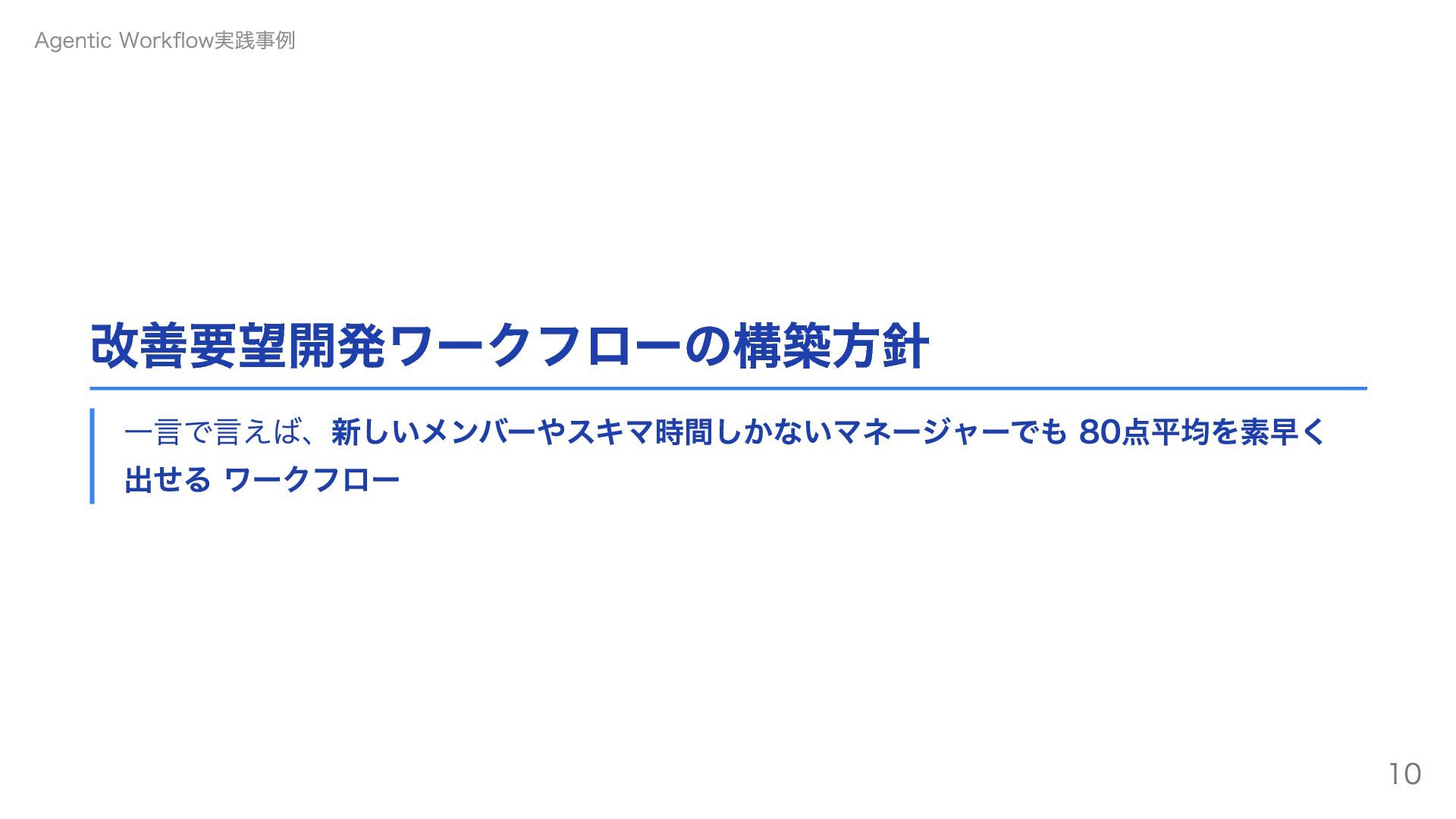 Evaluator-Optimizer は運用がまだ上手く回せて おらず 改善中 設計・実装後コードのマルチエージェントレビュー、修正の 自動化 実装者がローカルでAIループを回し、最終的に PR レビュ ー時に人間が承認する流れにしたい 実装工程は git worktree で複数並列実装 。設 計が作り込めていればここは爆速になるはず Prompt Chaining(主⾻格) Phase 1 Routing 経路選択 Phase 2 → 3 Phase 4 Routing 経路選択 Phase 5 Orchestrator-Workers マルチAgent設計レビュー Phase 6 Phase 7 Phase 8 Parallelization 並列タスク実⾏(git worktree) Phase 9 ̶ Evaluator-Optimizer 実装検証 → GO / NO-GO 横断: Human-in-the-Loop (承認ゲート) 横断: Steering (外部設定による動的構成) Phase(フェーズ) Agent Pattern 横断要素 Agentic Workflow実践事例 14
