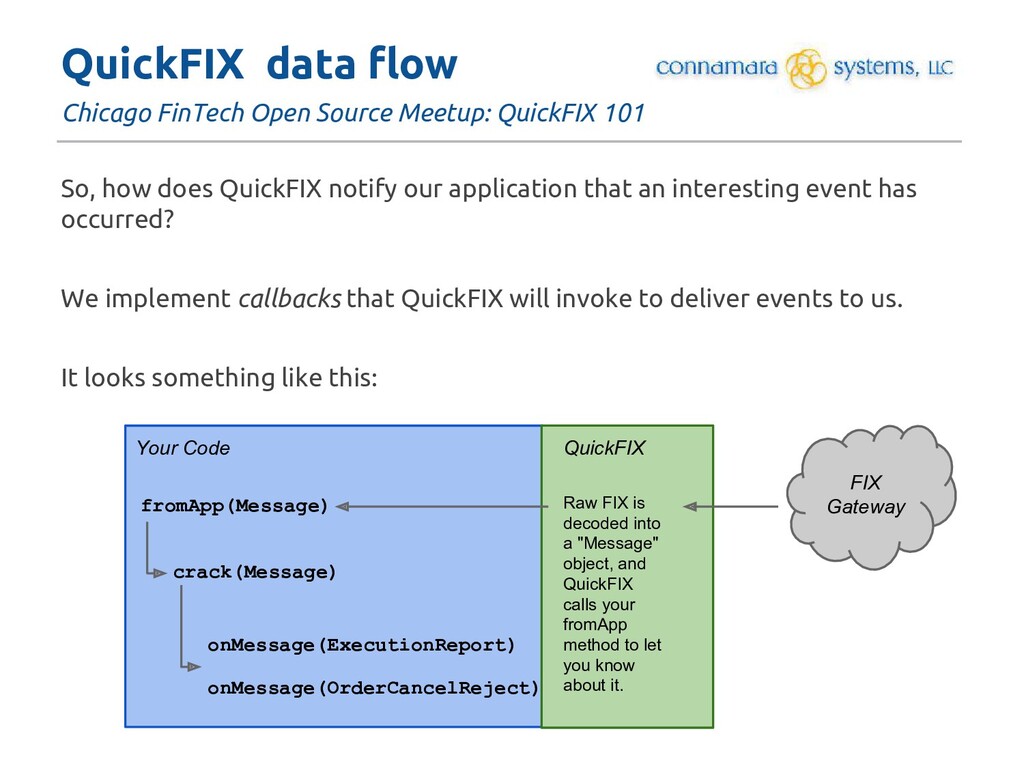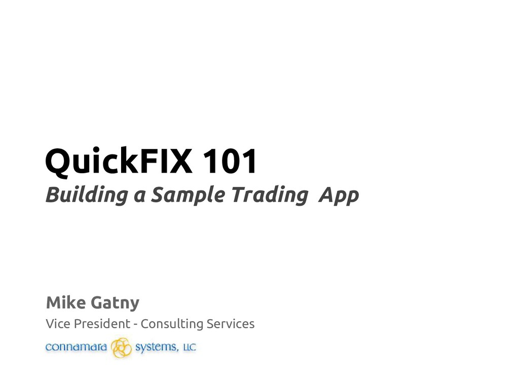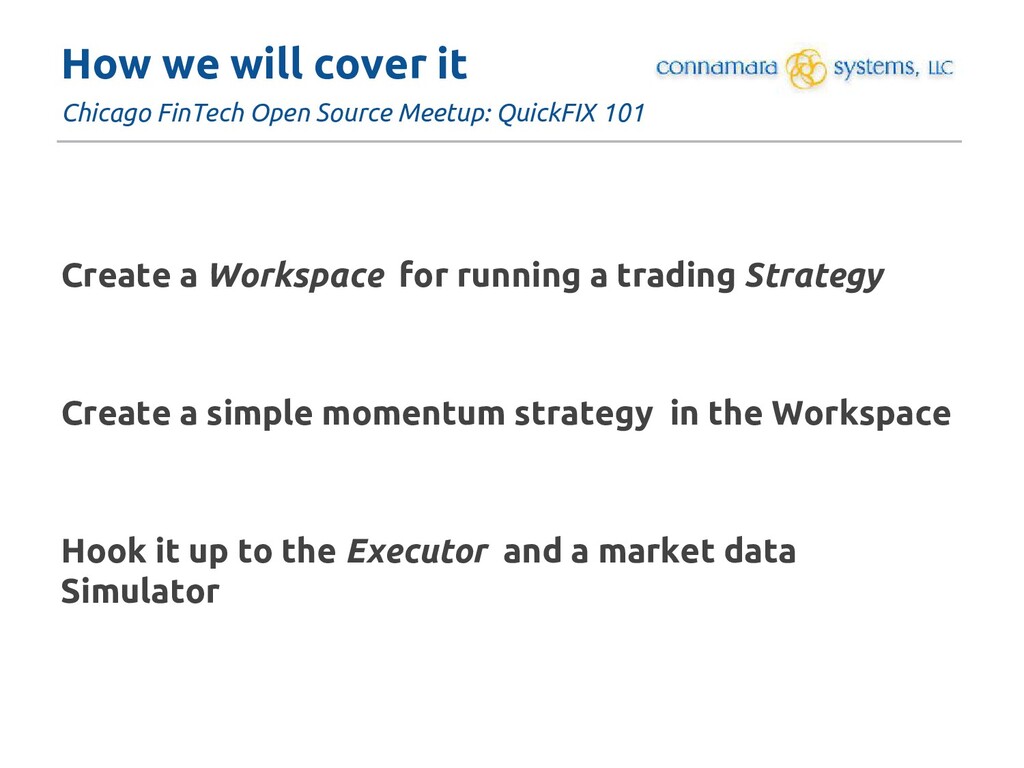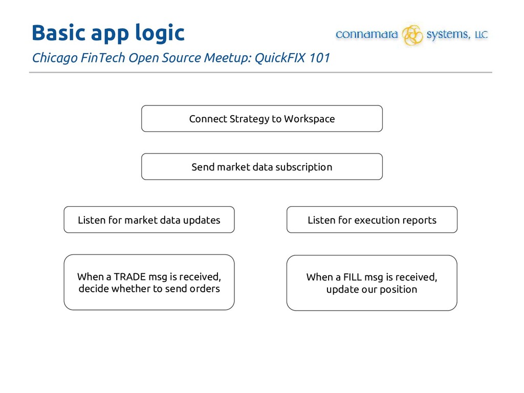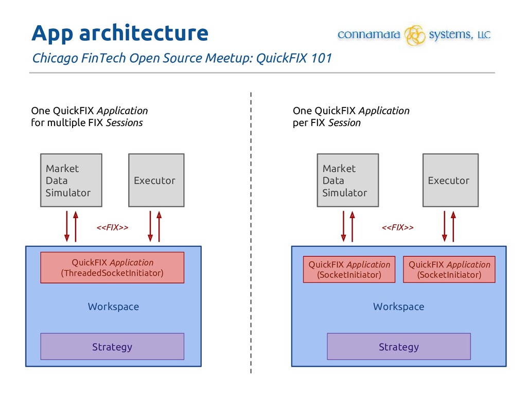 It demonstrates how QuickFIX can be used to rapidly develop a workspace in which to run a trading strategy. The workspace provides market data and order routing to the strategy.