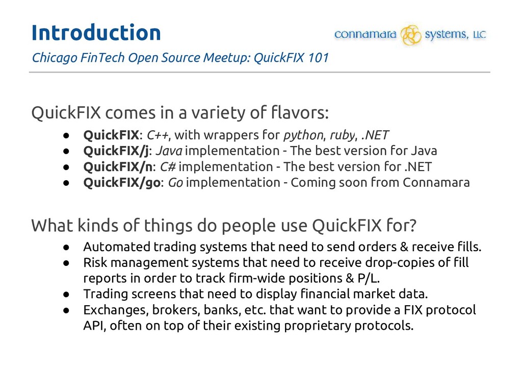 Presentation given at the Chicago FinTech Open Source Meetup on October 16, hosted by Connamara Systems.