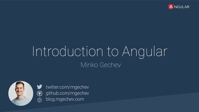 @yourtwitter Introduction to Angular Minko Gechev twitter.com/mgechev github.com/mgechev blog.mgechev.com