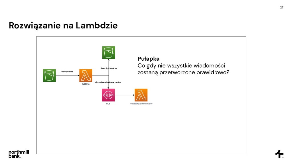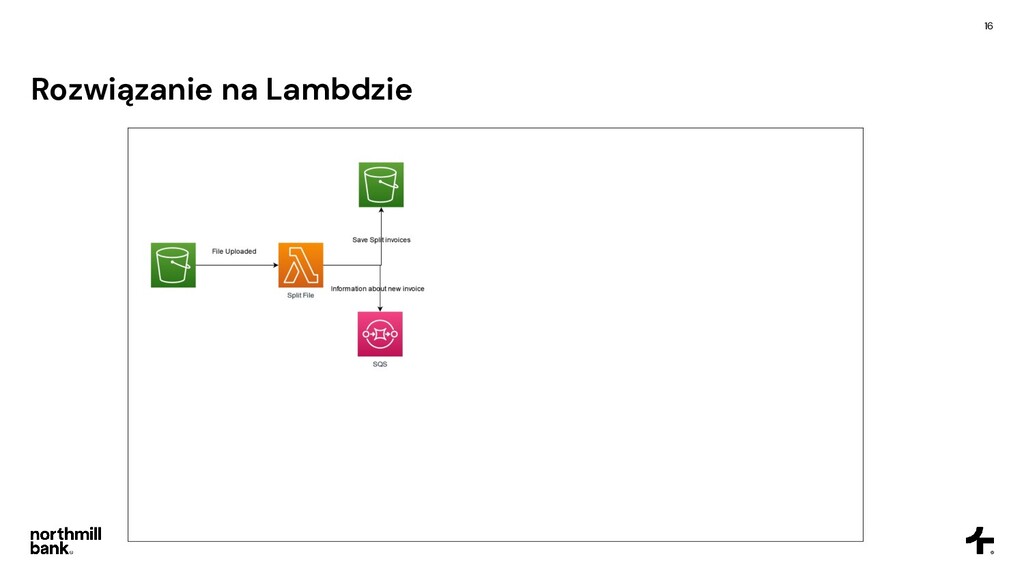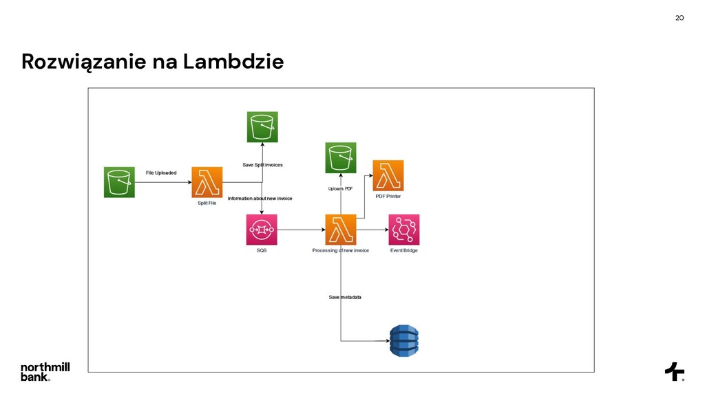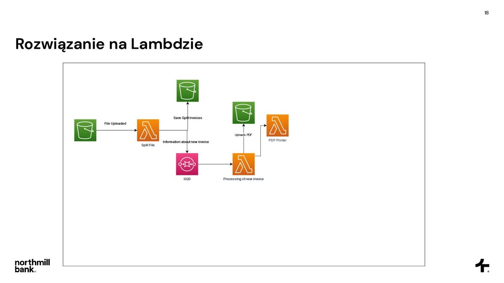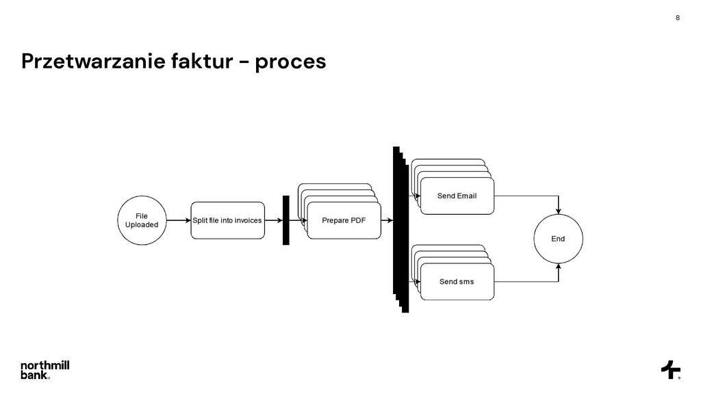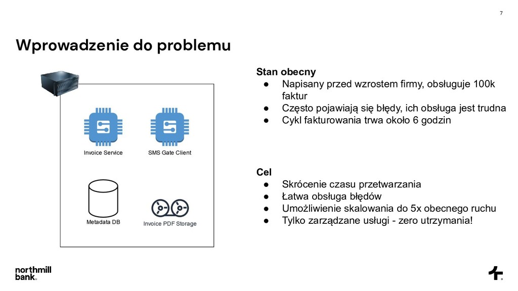 firmy, obsługuje 100k faktur • Często pojawiają się błędy, ich obsługa jest trudna • Cykl fakturowania trwa około 6 godzin Cel • Skrócenie czasu przetwarzania • Łatwa obsługa błędów • Umożliwienie skalowania do 5x obecnego ruchu • Tylko zarządzane usługi - zero utrzymania!