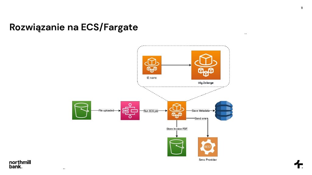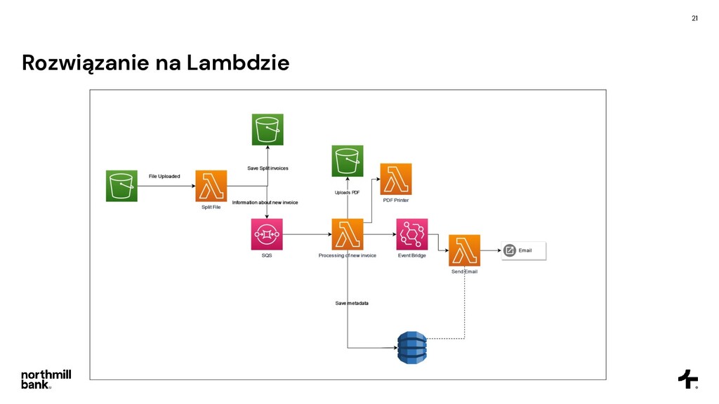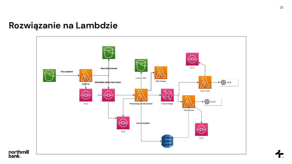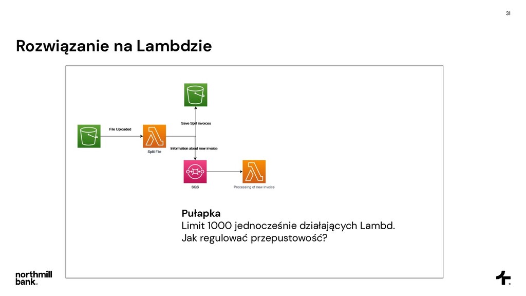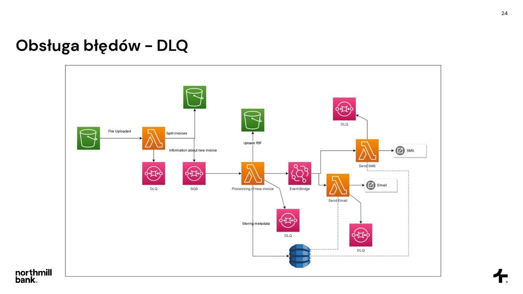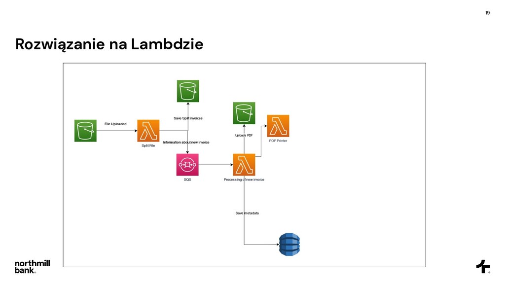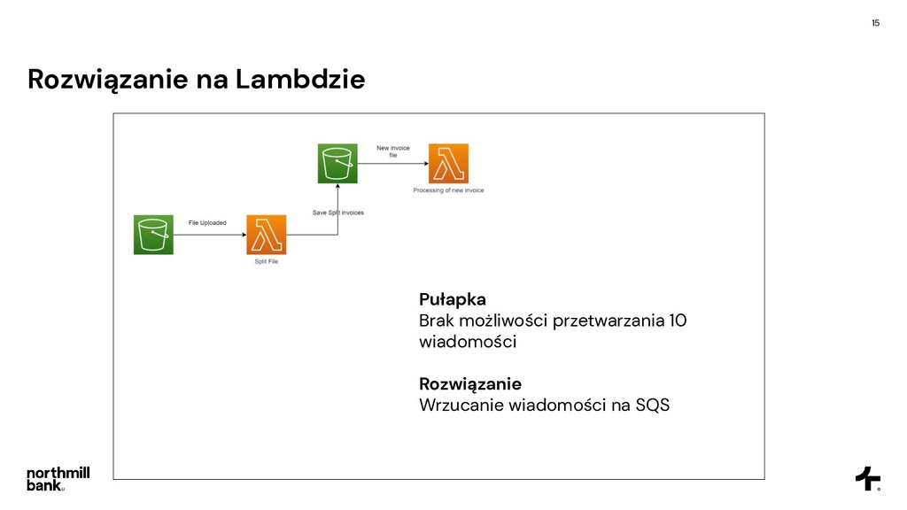 firmy, obsługuje 100k faktur • Często pojawiają się błędy, ich obsługa jest trudna • Cykl fakturowania trwa około 6 godzin Cel • Skrócenie czasu przetwarzania • Łatwa obsługa błędów • Umożliwienie skalowania do 5x obecnego ruchu • Tylko zarządzane usługi - zero utrzymania!