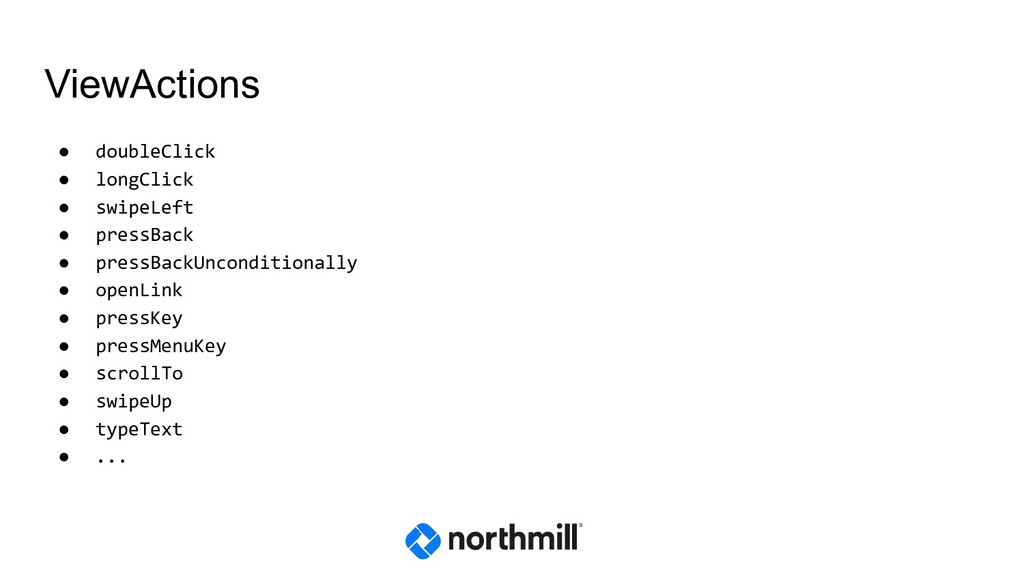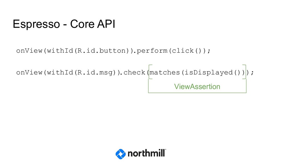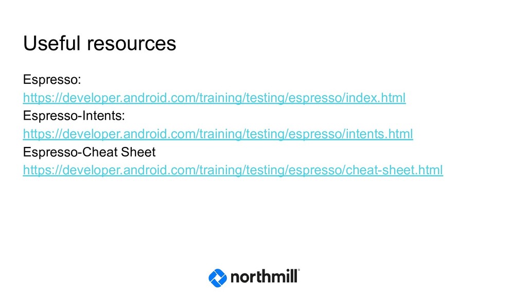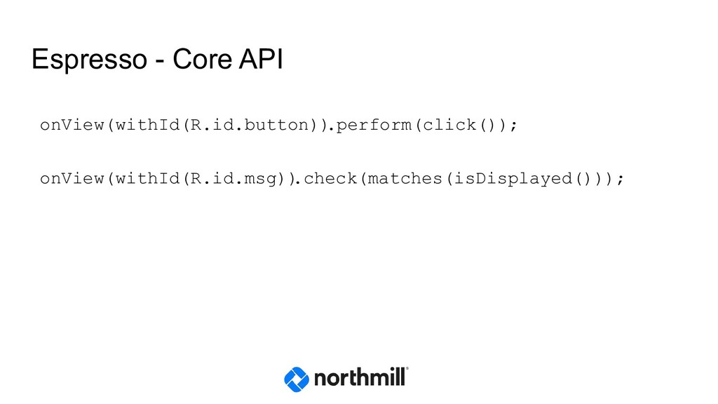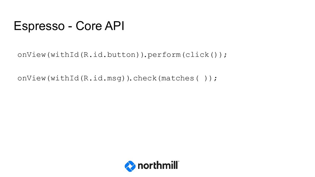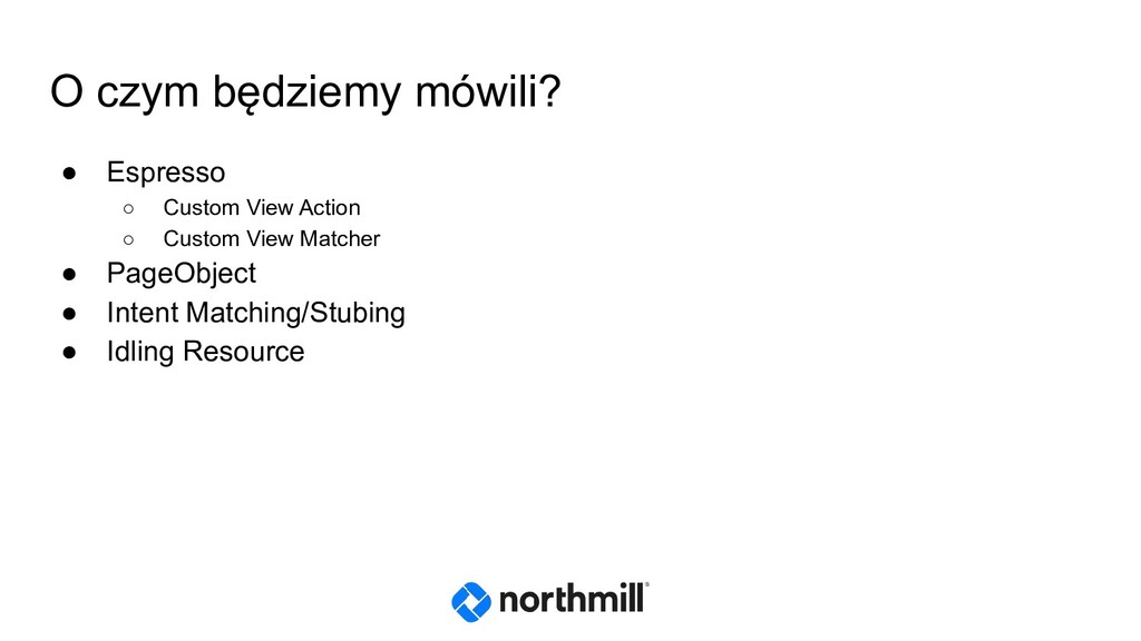 - pozwala znajdować widoki ViewAction - pozwala wykonywać akcje na widokach ViewAssertion - pozwala opisywać wymagania dla widoku Cheat sheet - https://developer.android.com/training/testing/espresso/cheat-sheet.html