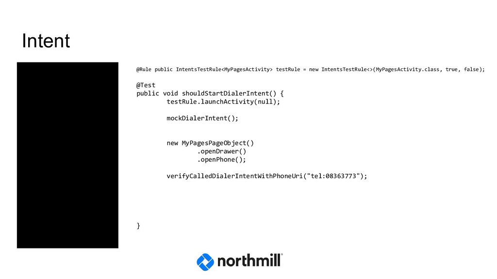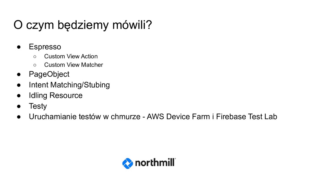 zmiany zachowania testów ActivityTestRule - zapewnia “świeże” activity przed każdym testem ServiceTestRule - zapewnia “świeży” serwis przed każdym testem @RunWith - pozwala ustawić runner dla klasy testowej @Before - oznaczenie metody wywoływanej przed każdym testem @After - oznaczenie metody wywoływanej po każdym teście