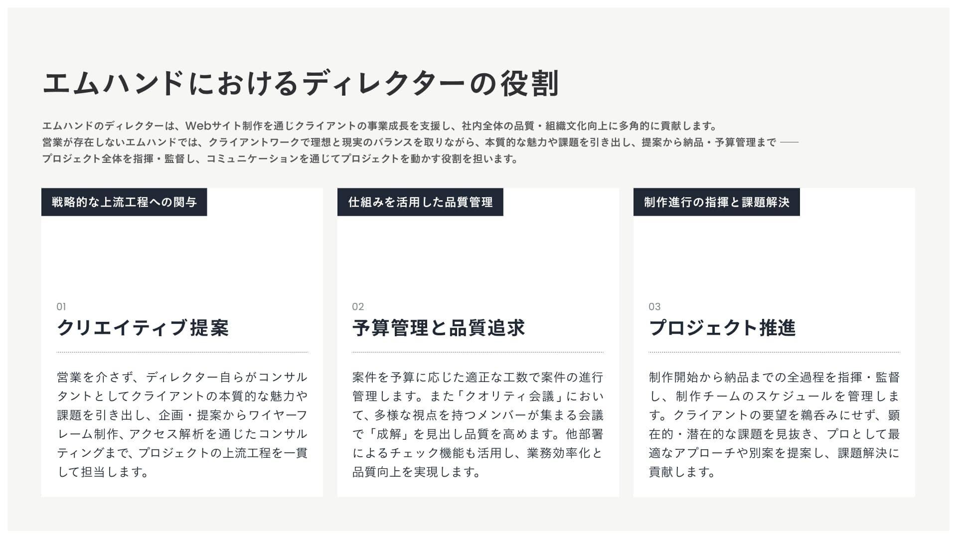株式会社エムハンド/クリエイティブディレクター(Webディレクター)のカルチャーデック。