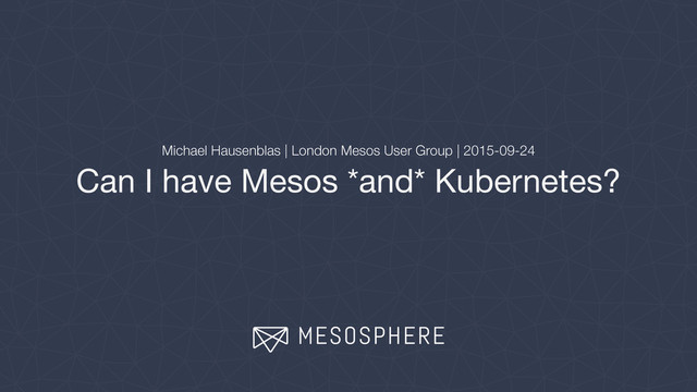 Crossing the Streams: Leveraging Kubernetes Services From Other Mesos Frameworks and Vice Versa by Timothy St. Clair, MesosCon Seattle 2015 • https://github.com/mesosphere/kubernetes-mesos 27