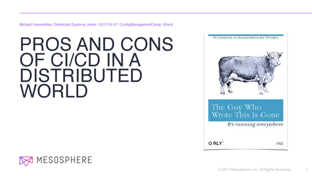 DEVELOP IN A DISTRIBUTED SETUP 10 hackernoon.com/how-we-develop-in-and-with-distributed-systems-66c71e918735 DC/OS Vagrant Docker Mac/Windows Minikube, Minishift no need to maintain cluster no costs off-line and fast dev cycles limited scale not really a distributed system not all functionality might be available pure off-line
