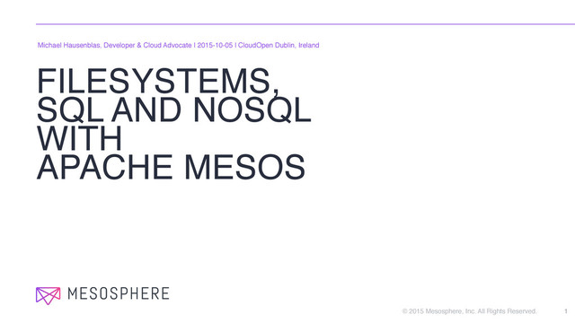 DISTRIBUTED OPERATING SYSTEM 22 • kernel (Apache Mesos, written in C++) scales to 10,000 of nodes • fault-tolerant in all components, rolling upgrades throughout • containers first class citizens (LXC, Docker) • local OS per node (+container enabled) • scheduling (long-lived, batch) • service discovery, monitoring, logging, debugging