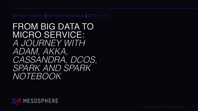 A journey with Adam, Akka, Cassandra, DCOS, Spark and Spark Notebook. Tutorial at Devoxx in Antwerp, see also http://cfp.devoxx.be/2015/talk/YHI-5063/From_Big_Data_to_Micro_Service:_A_journey_with_Adam,_Cassandra,_DCOS,_Play!_2,_Spark,_Spark_Notebook_and_Spray