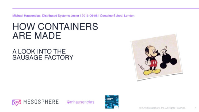 31 { "id": "/webserver", "instances": 5, "cpus": 0.1, "mem": 128, "container": { "type": "DOCKER", "docker": { "image": "nginx:1.9.14", "network": "BRIDGE", "portMappings": [ { "containerPort": 80, "hostPort": 0 } ] } }, "upgradeStrategy": { "minimumHealthCapacity": 0.9 }, "acceptedResourceRoles": [ "slave_public" ] } containerization runtime