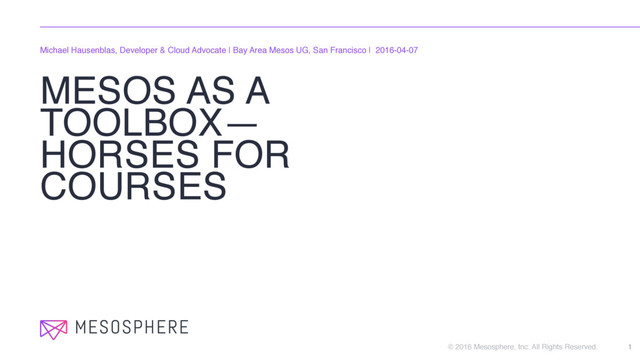 A talk at the Bay Area Mesos User Group, see http://www.meetup.com/Bay-Area-Mesos-User-Group/events/229805554/