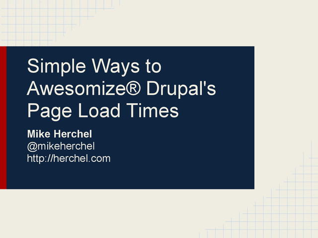 Wizard = Great Start! (https: //tools.percona.com/wizard) • Use Innodb (this is the default for D7) • Increase Innodb Buffer Size • MySQL Query Cache • Check your slow query logs!