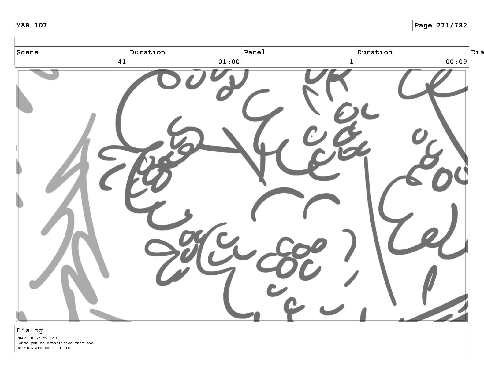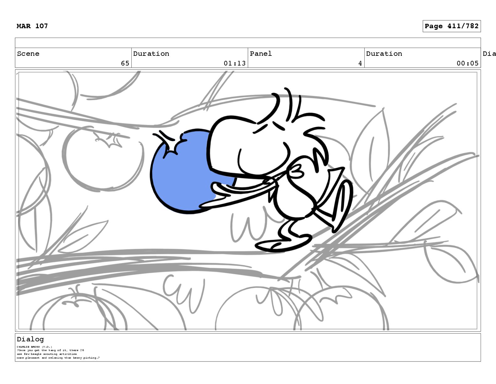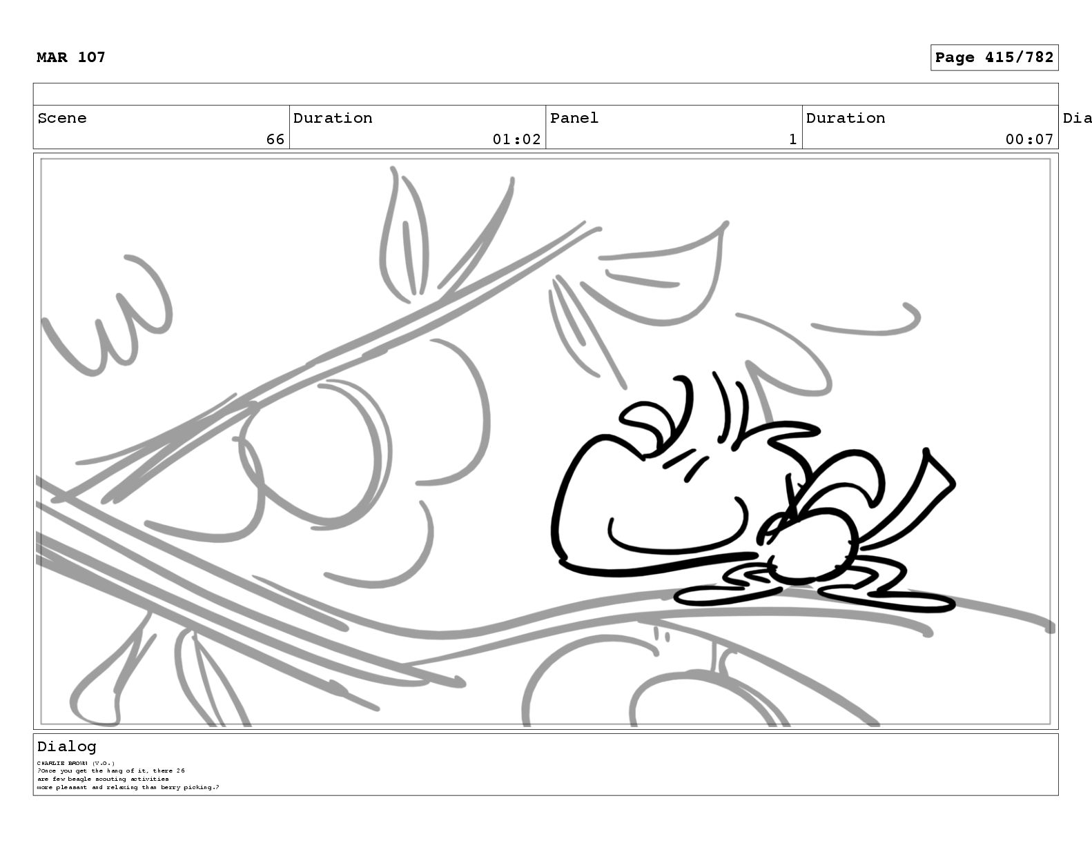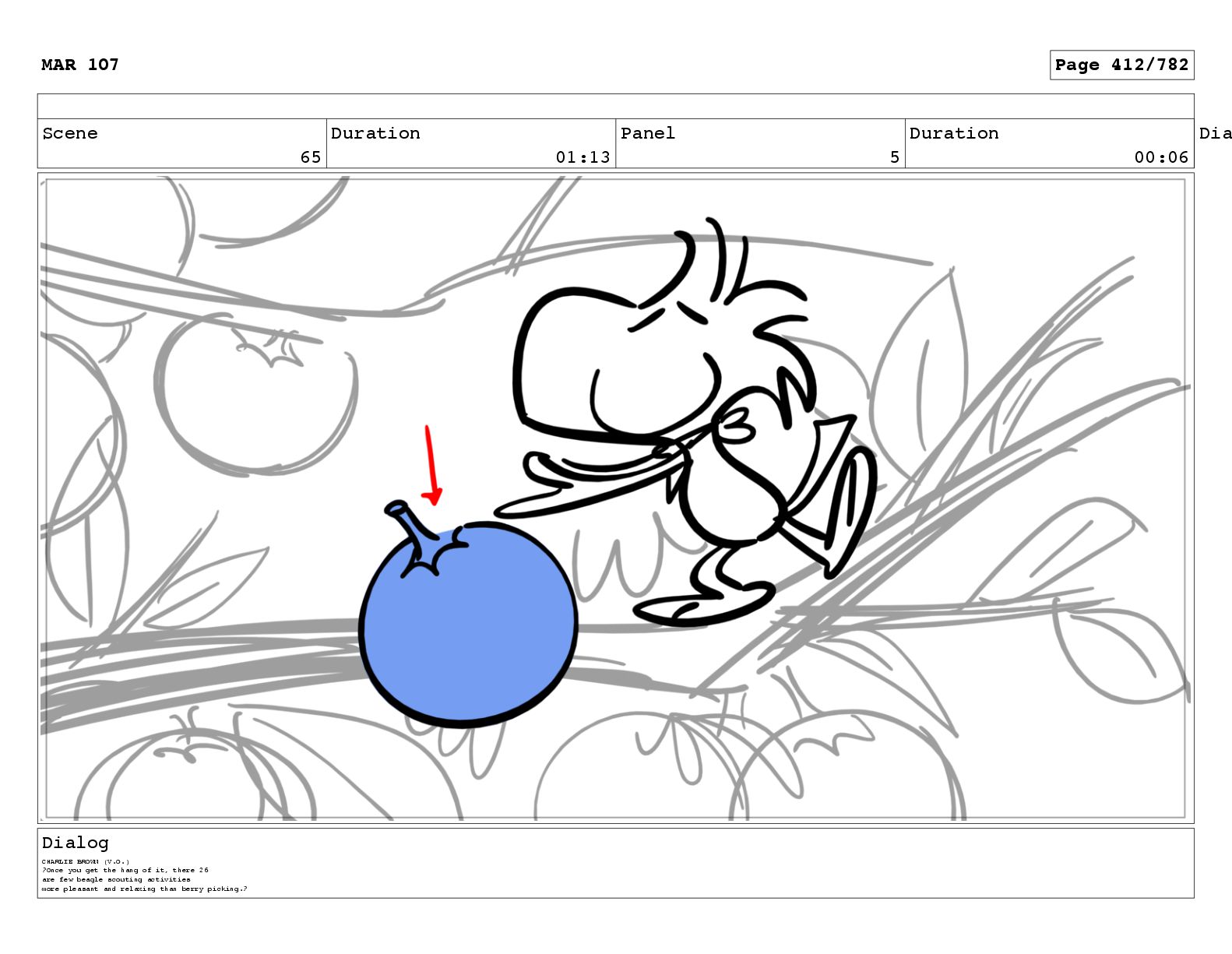 CHARLIE BROWN (V.O.) ?Once you get the hang of it, there 26 are few beagle scouting activities more pleasant and relaxing than berry picking.? MAR 107 Page 411/782