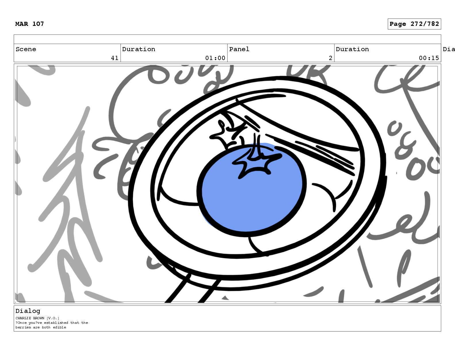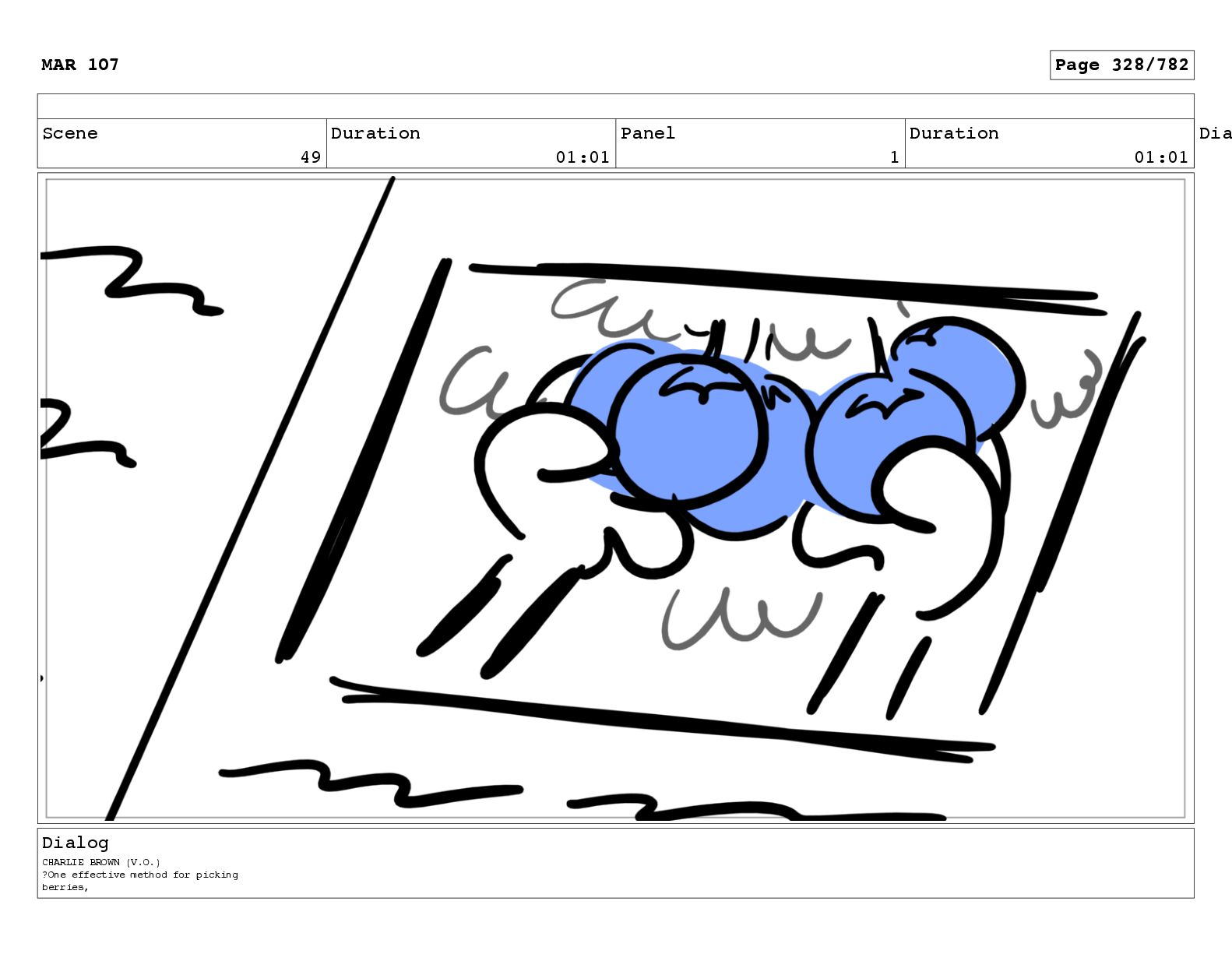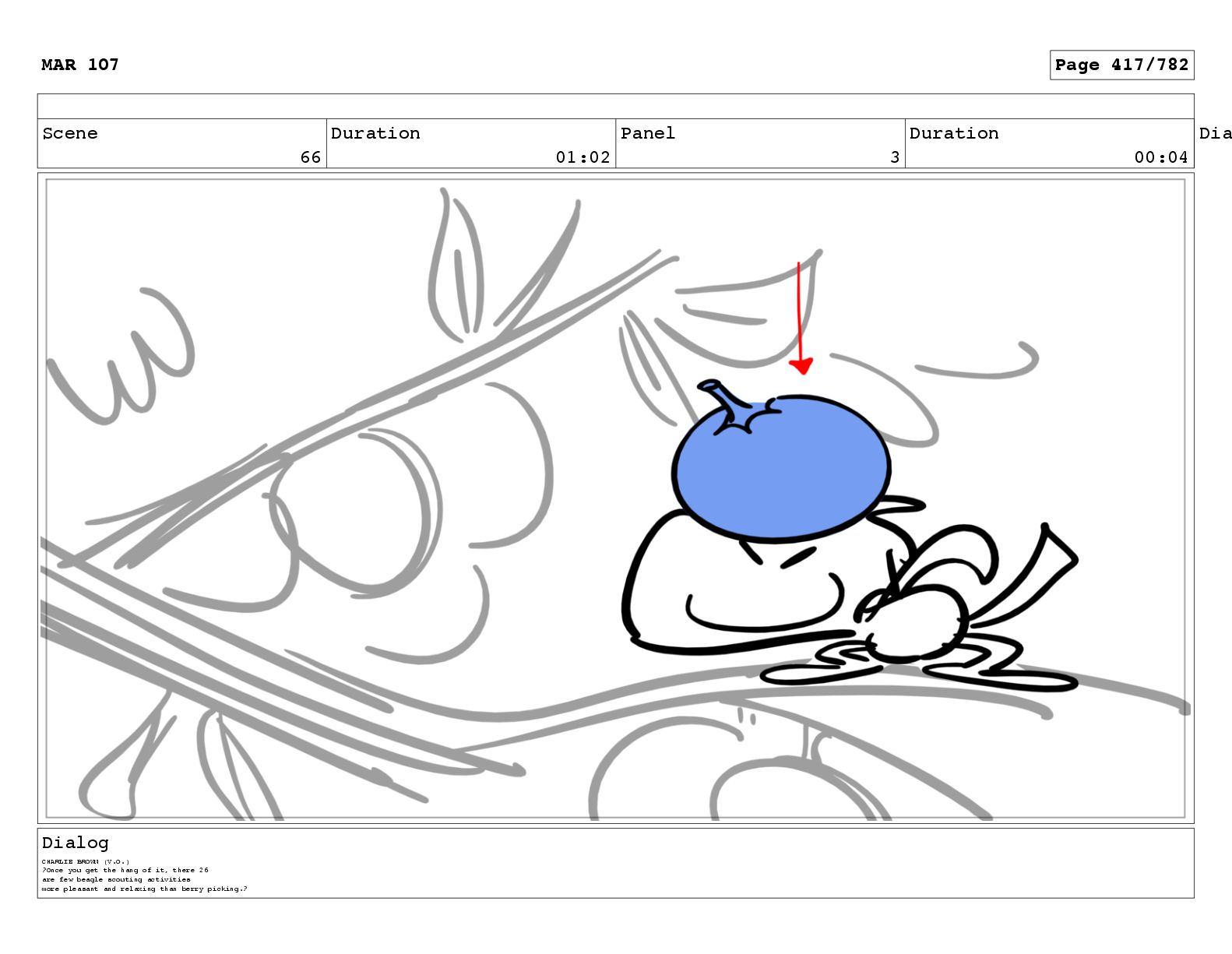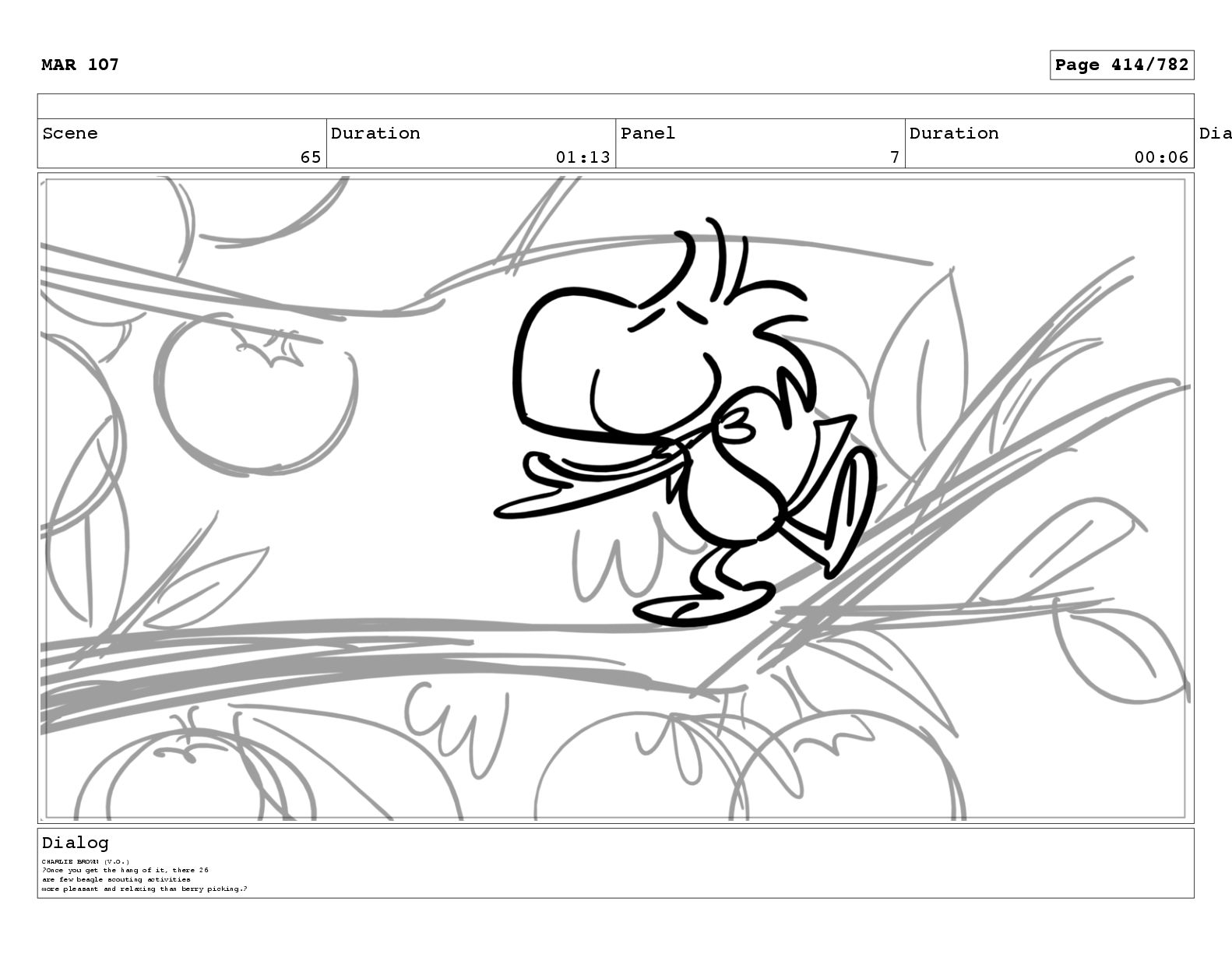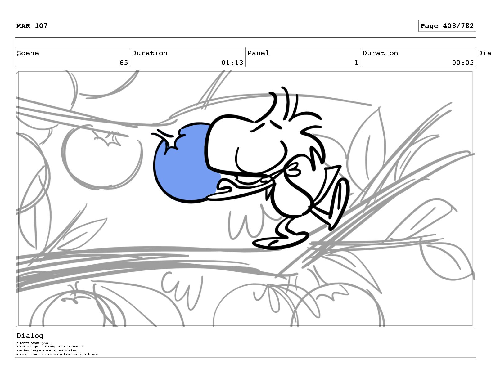 CHARLIE BROWN (V.O.) ?Once you get the hang of it, there 26 are few beagle scouting activities more pleasant and relaxing than berry picking.? MAR 107 Page 411/782