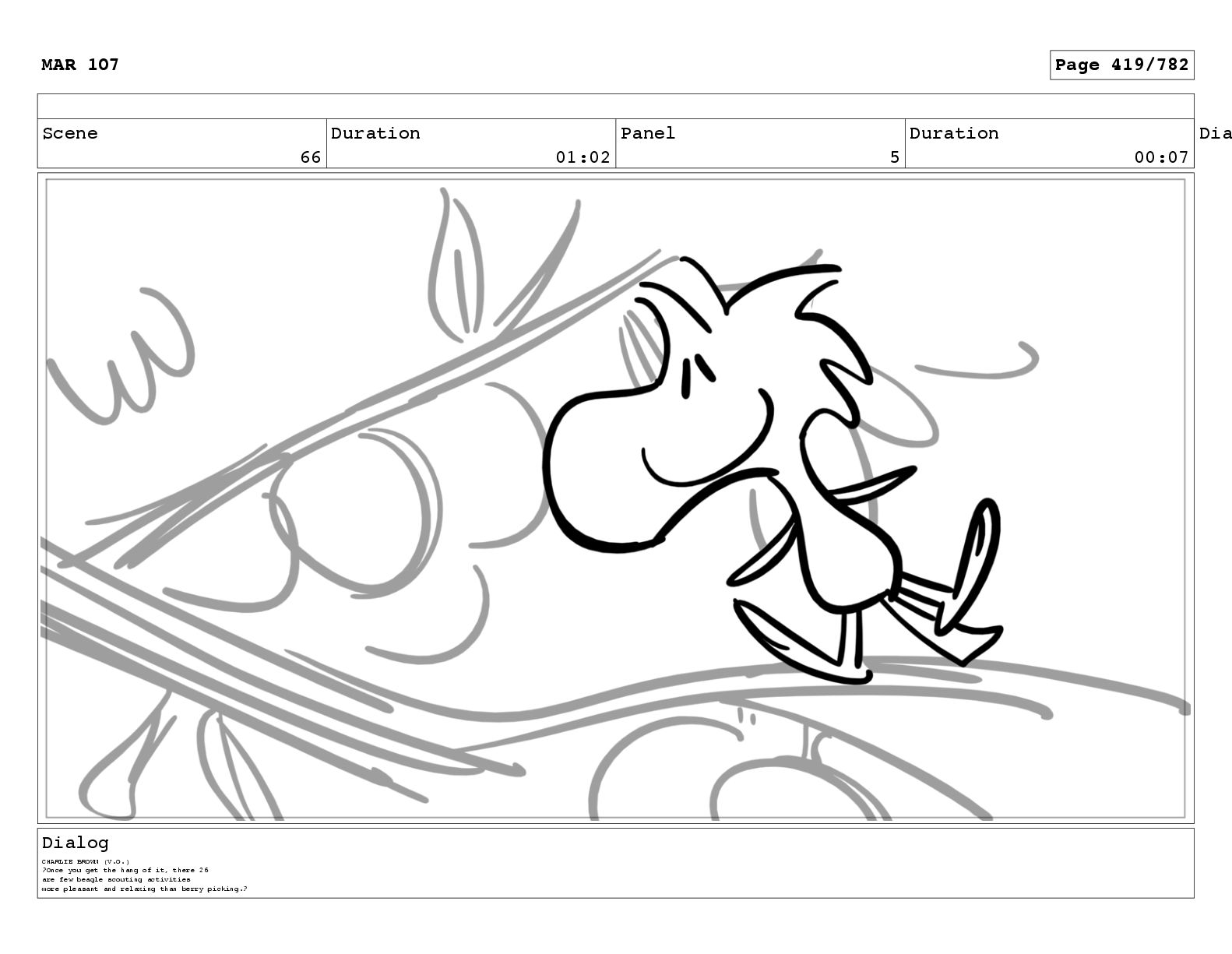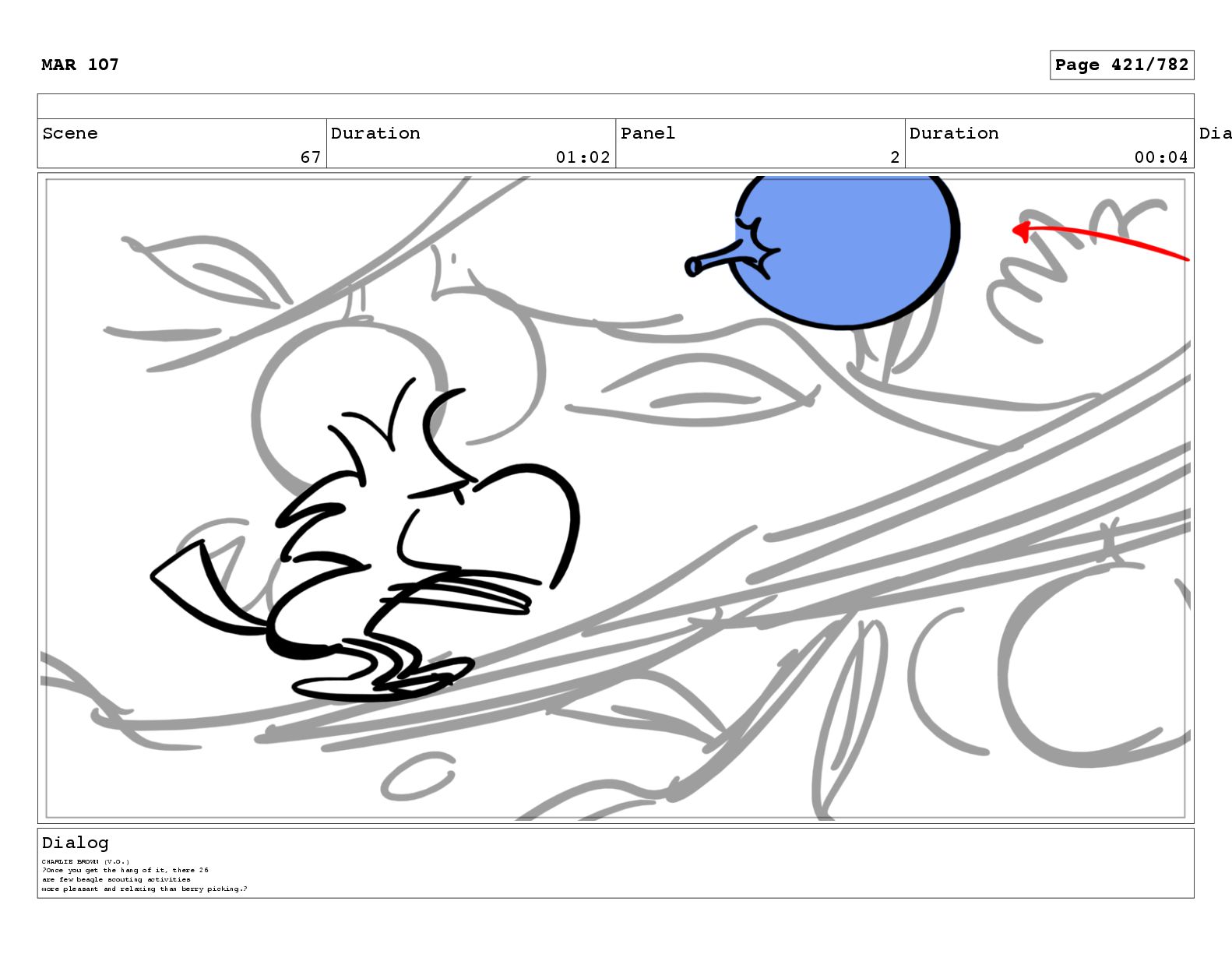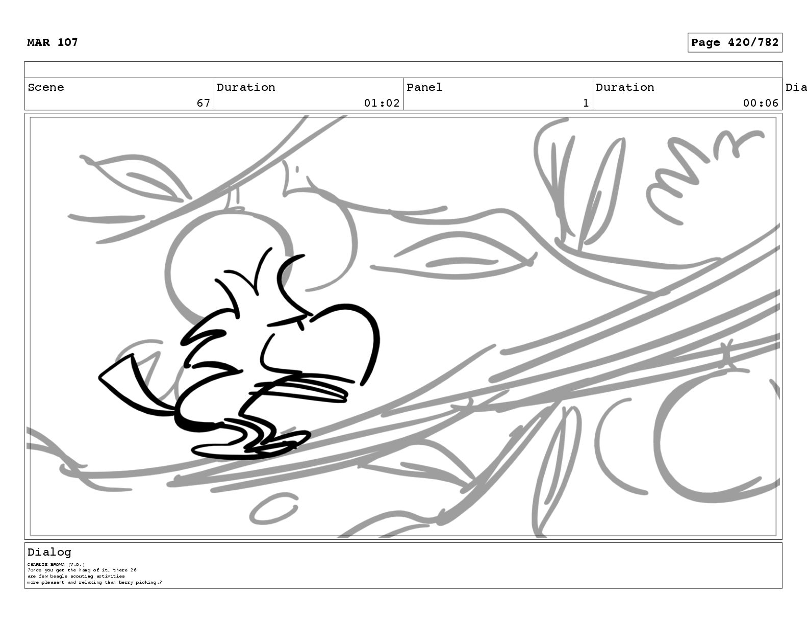 CHARLIE BROWN (V.O.) ?Once you get the hang of it, there 26 are few beagle scouting activities more pleasant and relaxing than berry picking.? MAR 107 Page 421/782