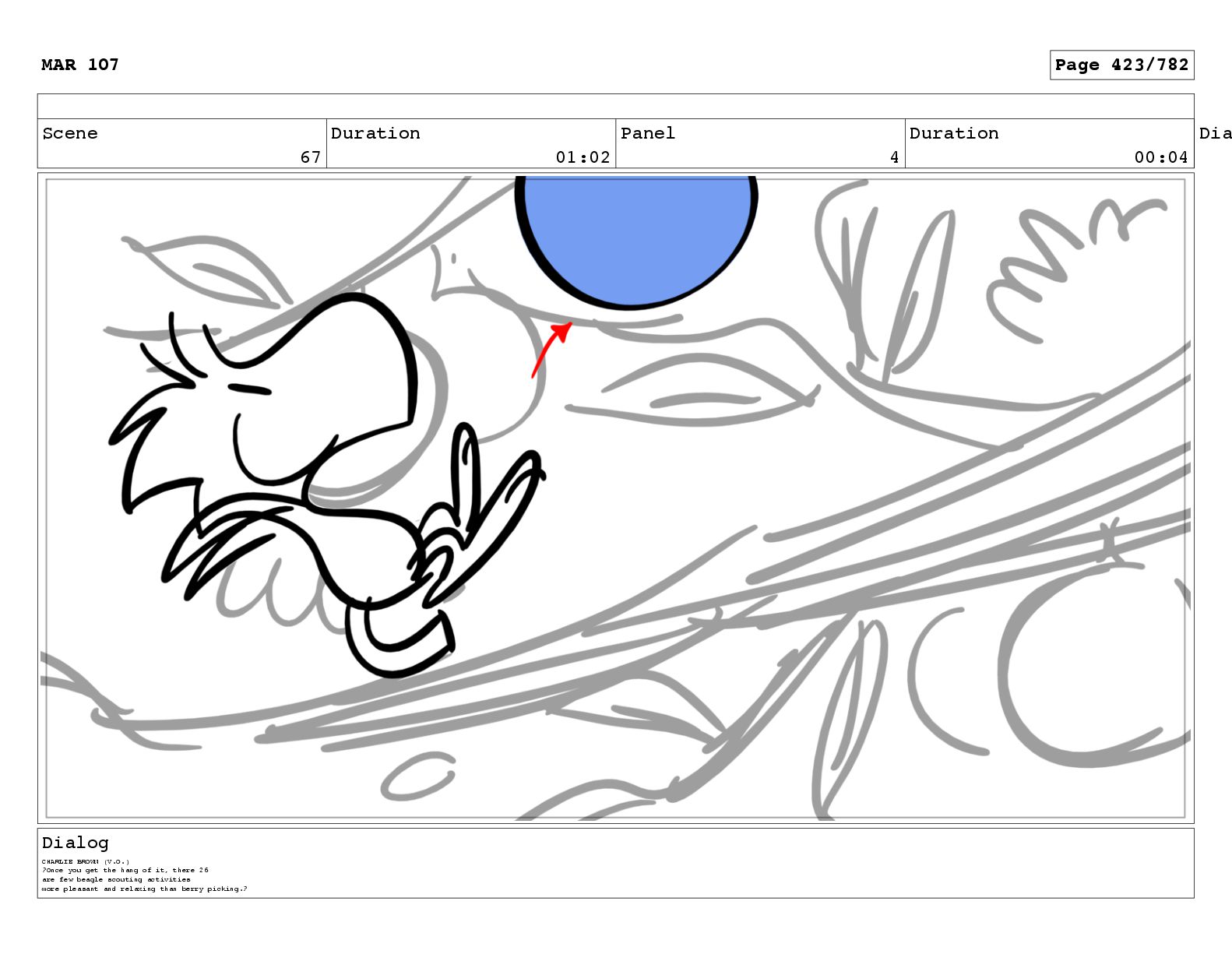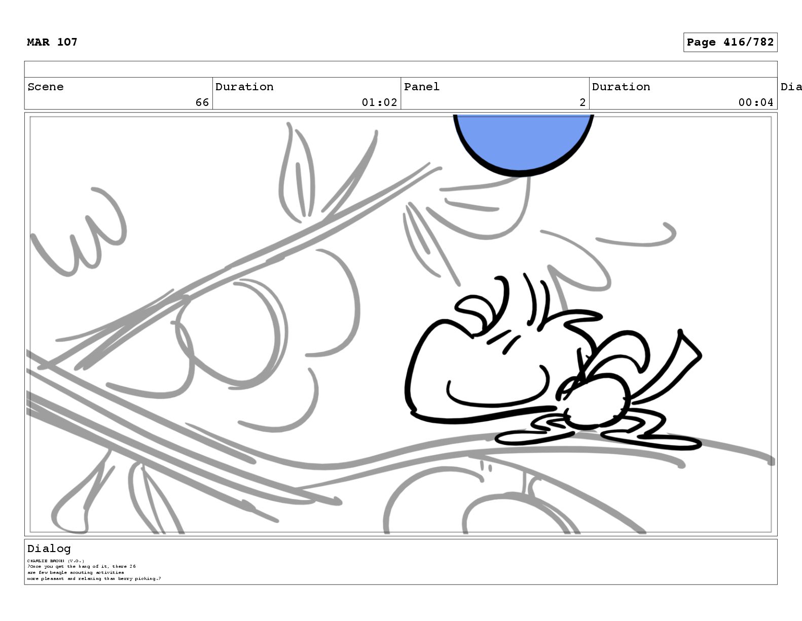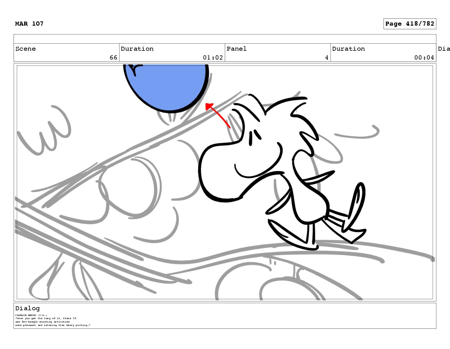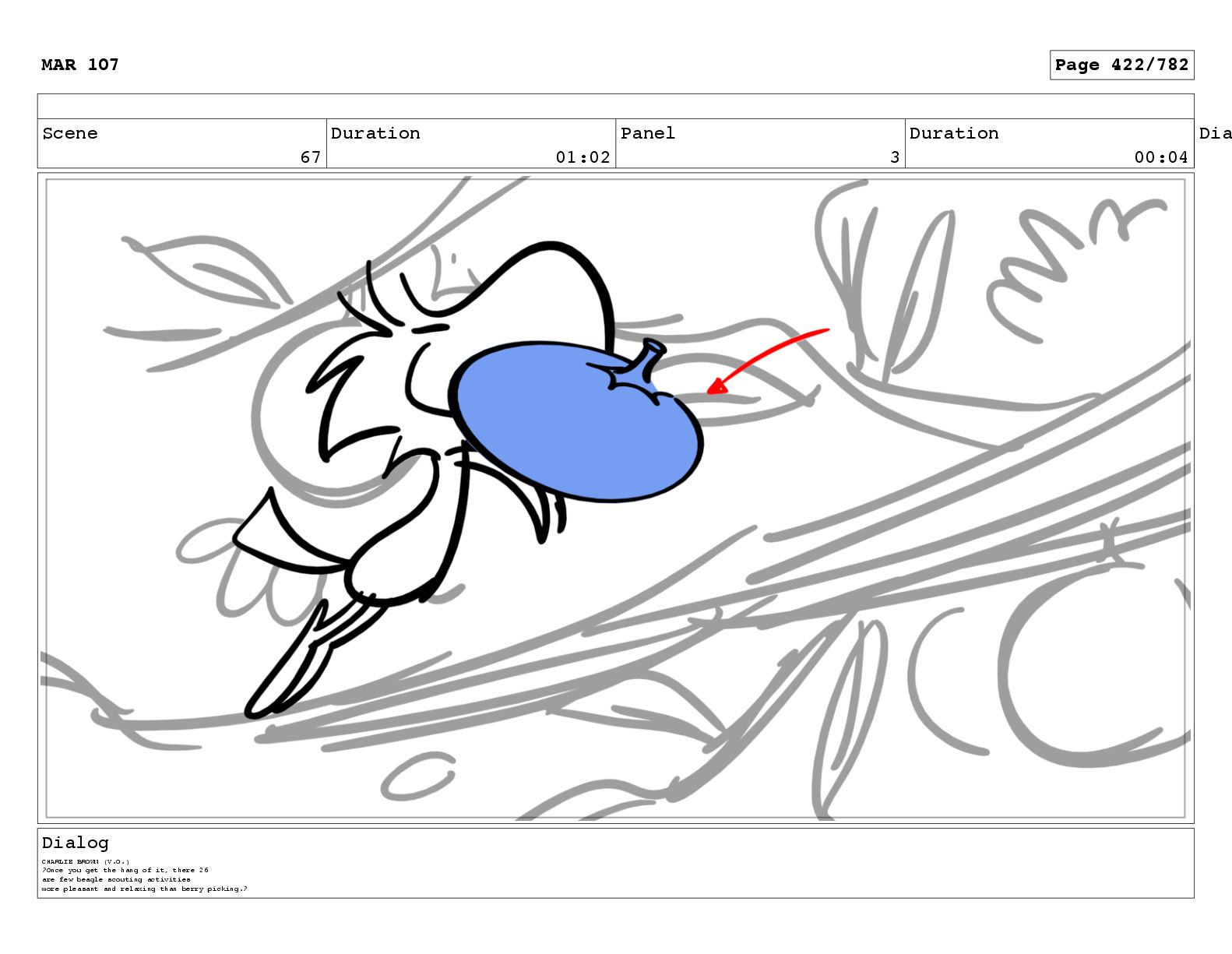 CHARLIE BROWN (V.O.) ?Once you get the hang of it, there 26 are few beagle scouting activities more pleasant and relaxing than berry picking.? MAR 107 Page 421/782