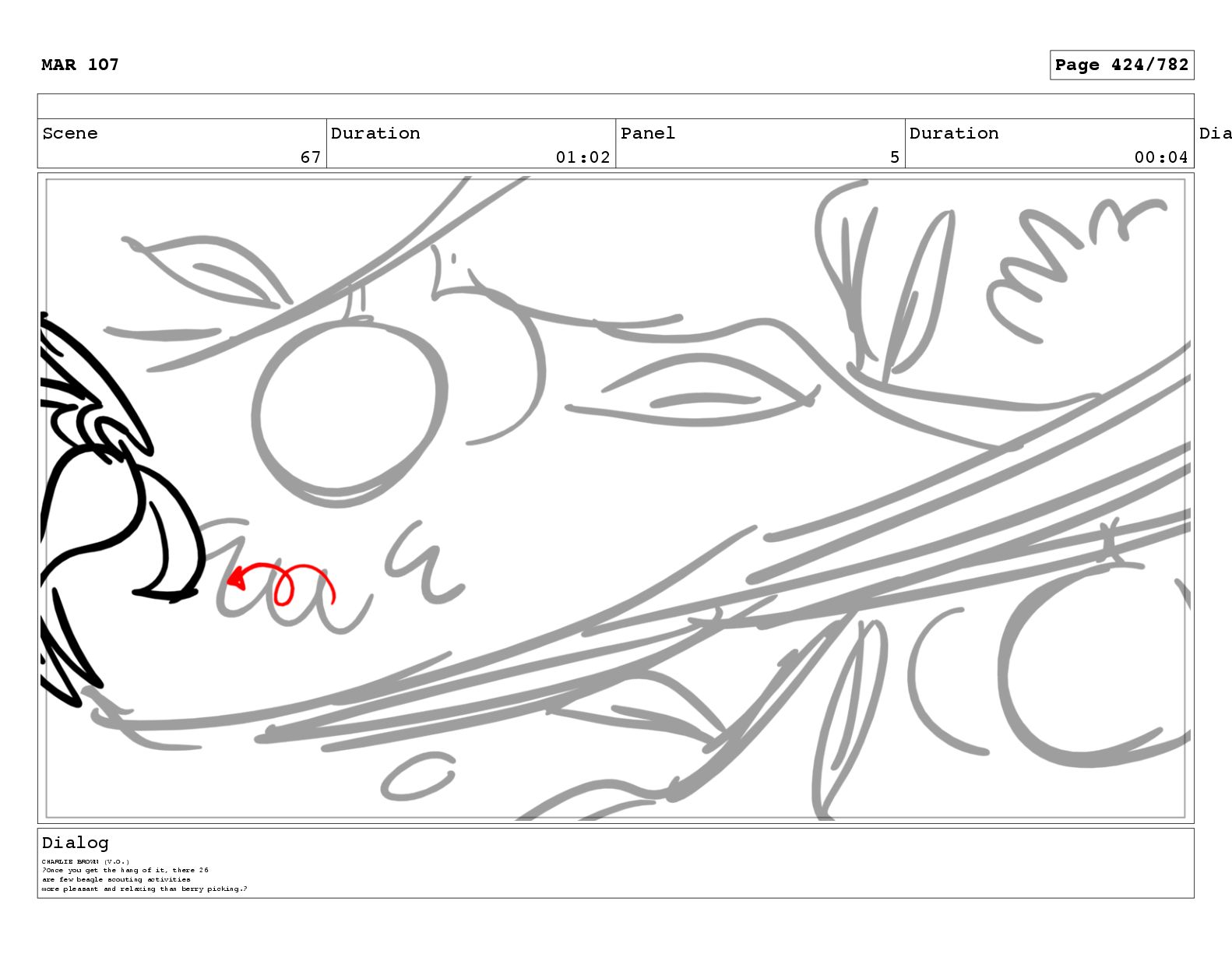 CHARLIE BROWN (V.O.) ?Once you get the hang of it, there 26 are few beagle scouting activities more pleasant and relaxing than berry picking.? MAR 107 Page 424/782