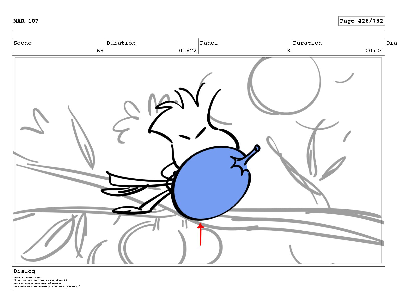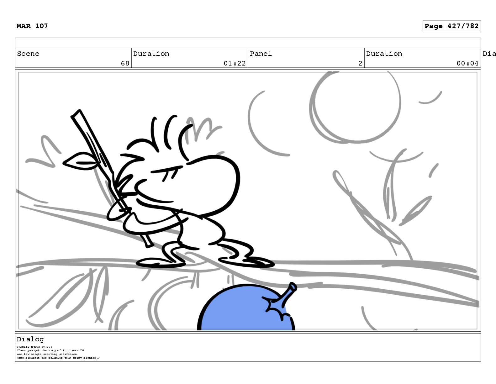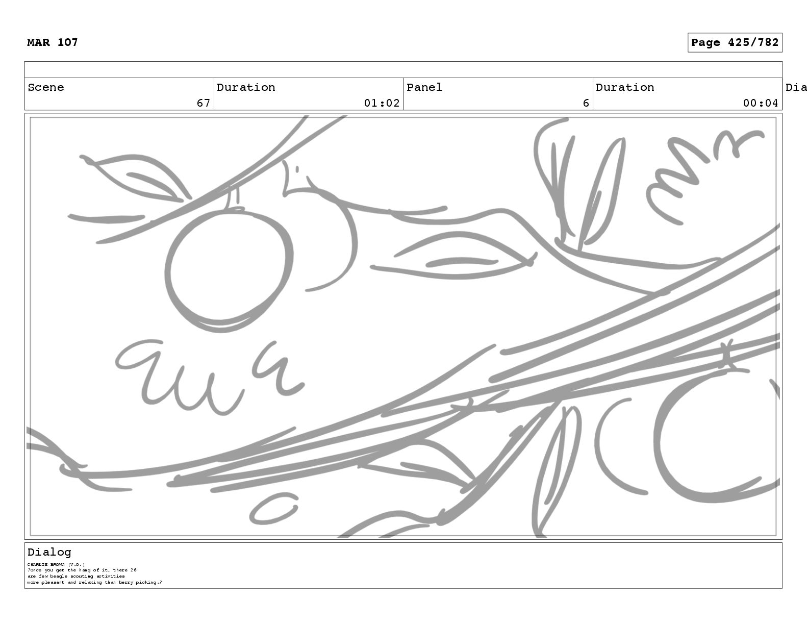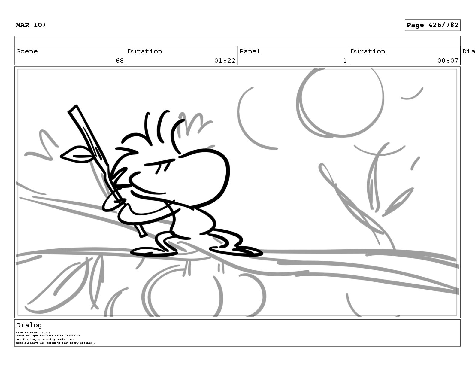 CHARLIE BROWN (V.O.) ?Once you get the hang of it, there 26 are few beagle scouting activities more pleasant and relaxing than berry picking.? MAR 107 Page 428/782
