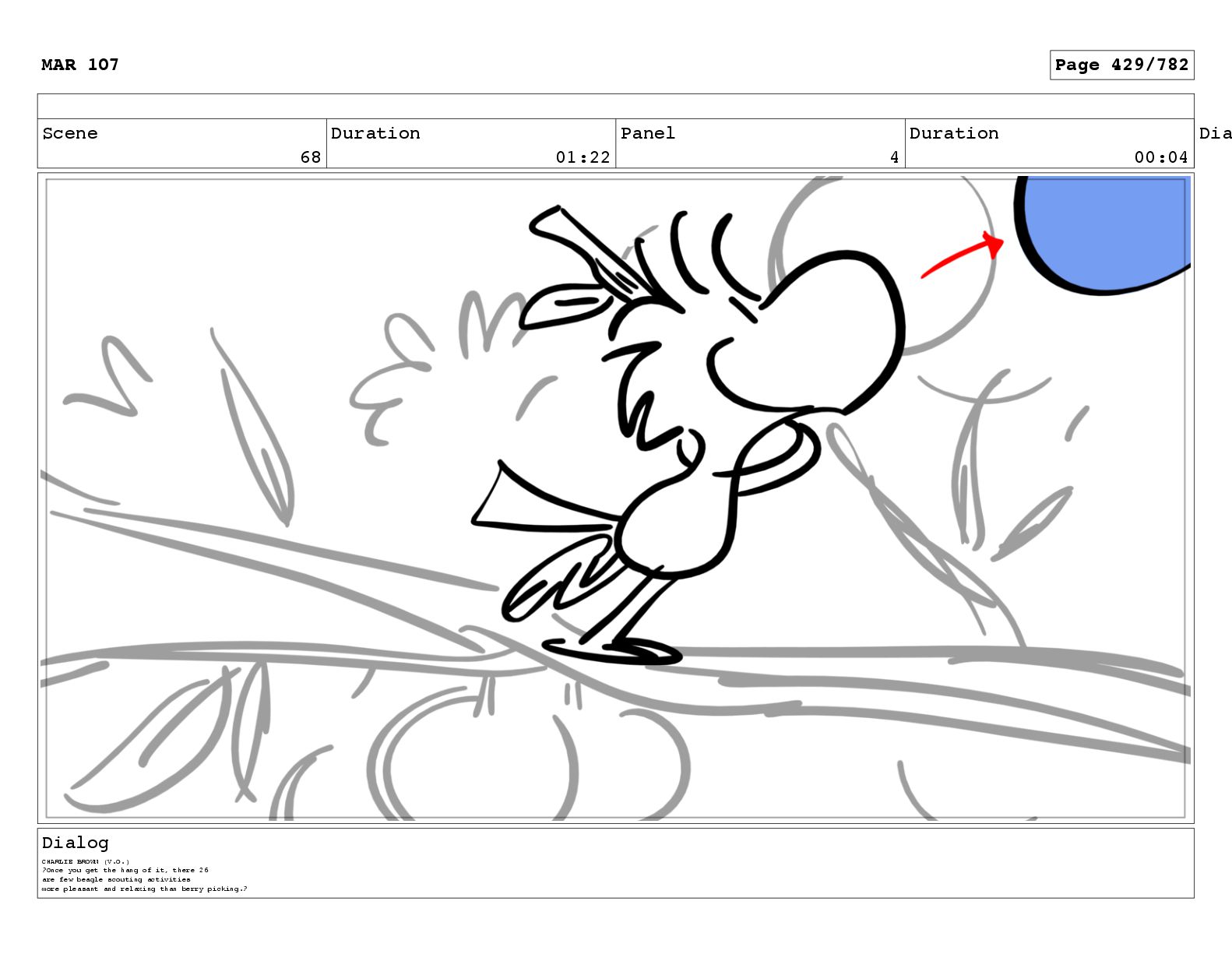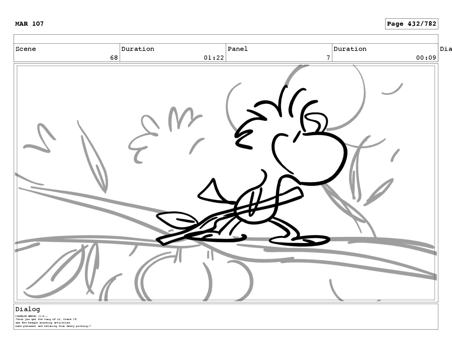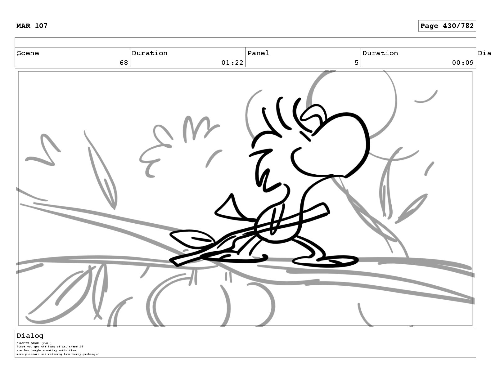 CHARLIE BROWN (V.O.) ?Once you get the hang of it, there 26 are few beagle scouting activities more pleasant and relaxing than berry picking.? MAR 107 Page 429/782