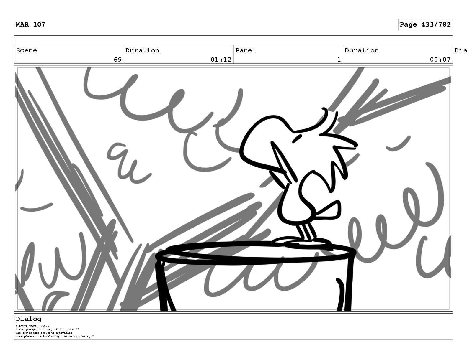 CHARLIE BROWN (V.O.) ?Once you get the hang of it, there 26 are few beagle scouting activities more pleasant and relaxing than berry picking.? MAR 107 Page 433/782