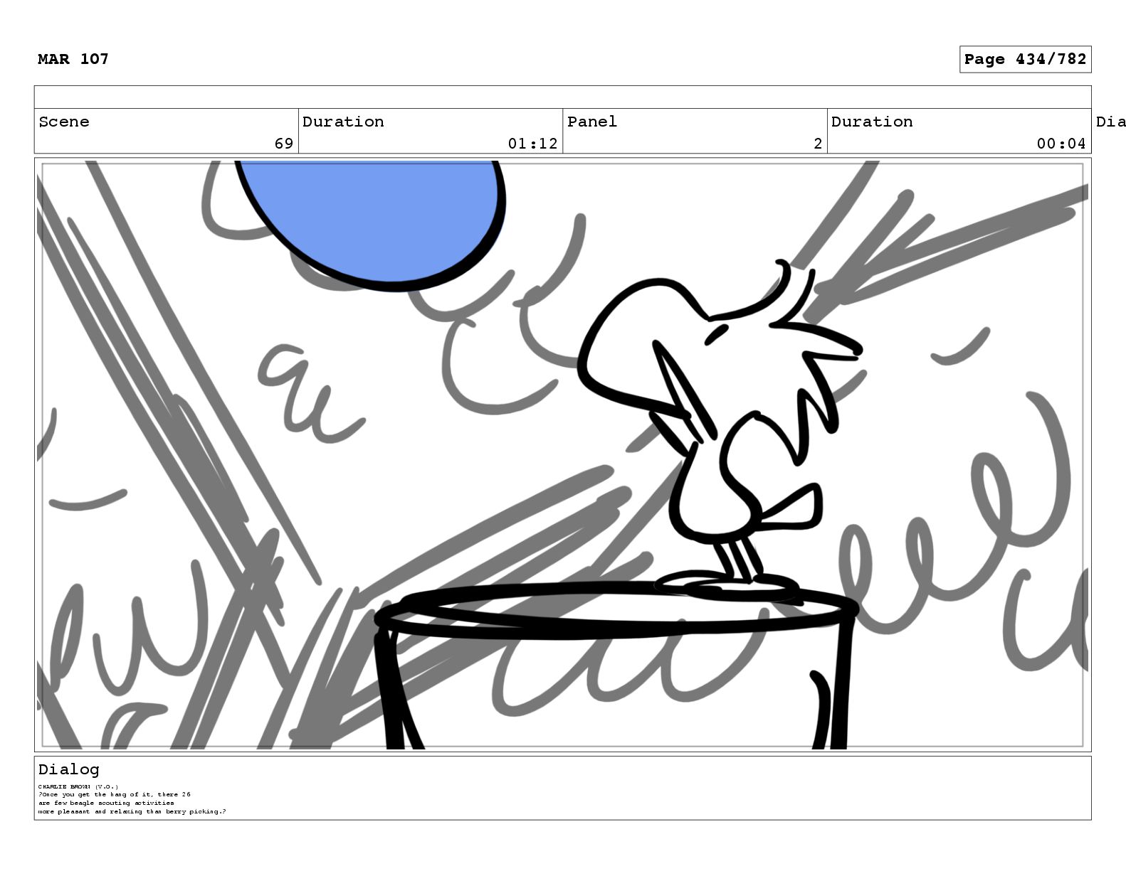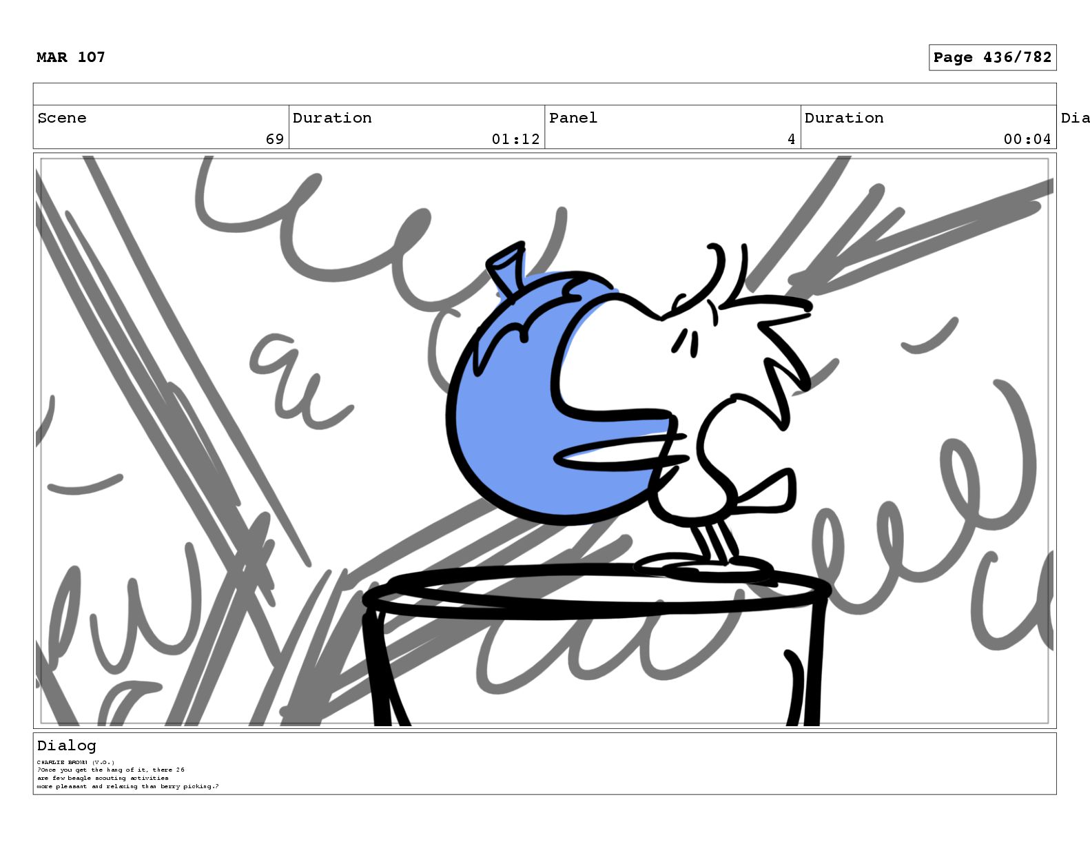 CHARLIE BROWN (V.O.) ?Once you get the hang of it, there 26 are few beagle scouting activities more pleasant and relaxing than berry picking.? MAR 107 Page 437/782