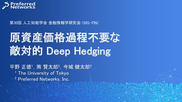 平野正徳, 南賢太郎, 今城健太郎, "原資産価格過程不要な敵対的Deep Hedging," 人工知能学会第30回金融情報学研究会(SIG-FIN), 2023/03/04 https://doi.org/10.11517/jsaisigtwo.2023.FIN-030_51