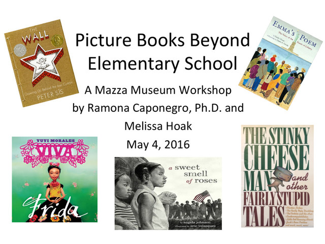 Books in the High School Classroom: A QualitaIve Case Study” by Melissa Reiker, 2011 • Engaging responses o`en displayed when students encounter picture books: – Recall parIcular memories – Understand the essence of empathy – Feel disturbed at negaIve aspects of human nature – Think about how to teach advanced concepts to young children – Consider self-‐image, peer pressure, conformity, and idenIty – Connect colors to feelings – Overcome a learning disability or difficulty – IdenIfy and relate to diverse cultures – Recognize the nature of symbolic and literal walls