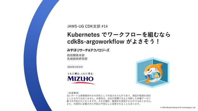 © 2024 Mizuho Research & Technologies, Ltd. Kubernetes でワークフローを組むなら cdk8s-argoworkflow