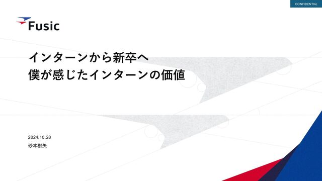 CONFIDENTIAL インターンから新卒へ 僕が感じたインターンの価値 2024.10.28 砂本樹矢
