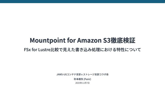 Mountpoint for Amazon S3 徹底検証 FSx for Lustre 比較で見えた書き込み処理における特性について
