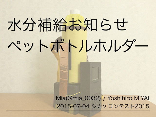 シカケコンテスト2015で発表した「水分補給お知らせペットボトルホルダー」のスライドです。