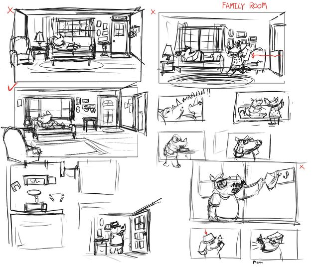 Scene planning and staging beatboards for Alane Adams Studios Short Rufus the Rhino
