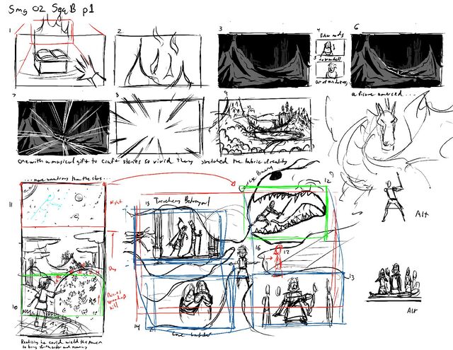 A sampling of conceptual thumbnails from the Storybook and Parlor of Passages sequences from Alane Adams Studios' Smudge 02